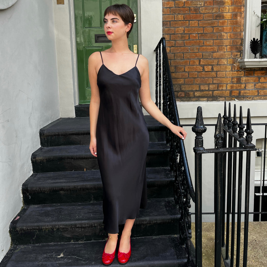 A beautifully crafted slip dress by Parasol Rose, perfect for your everyday luxury. Sensational buttery silk, a transitional piece, wear in the day then glam it up in the evening with some special jewellery!