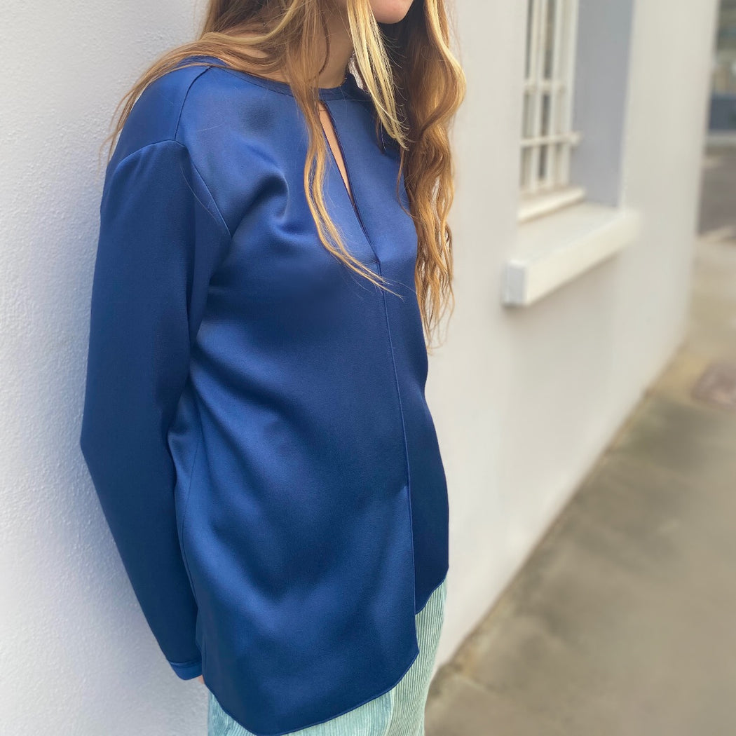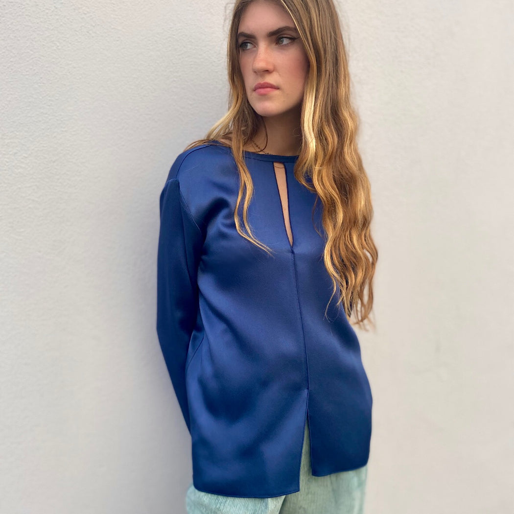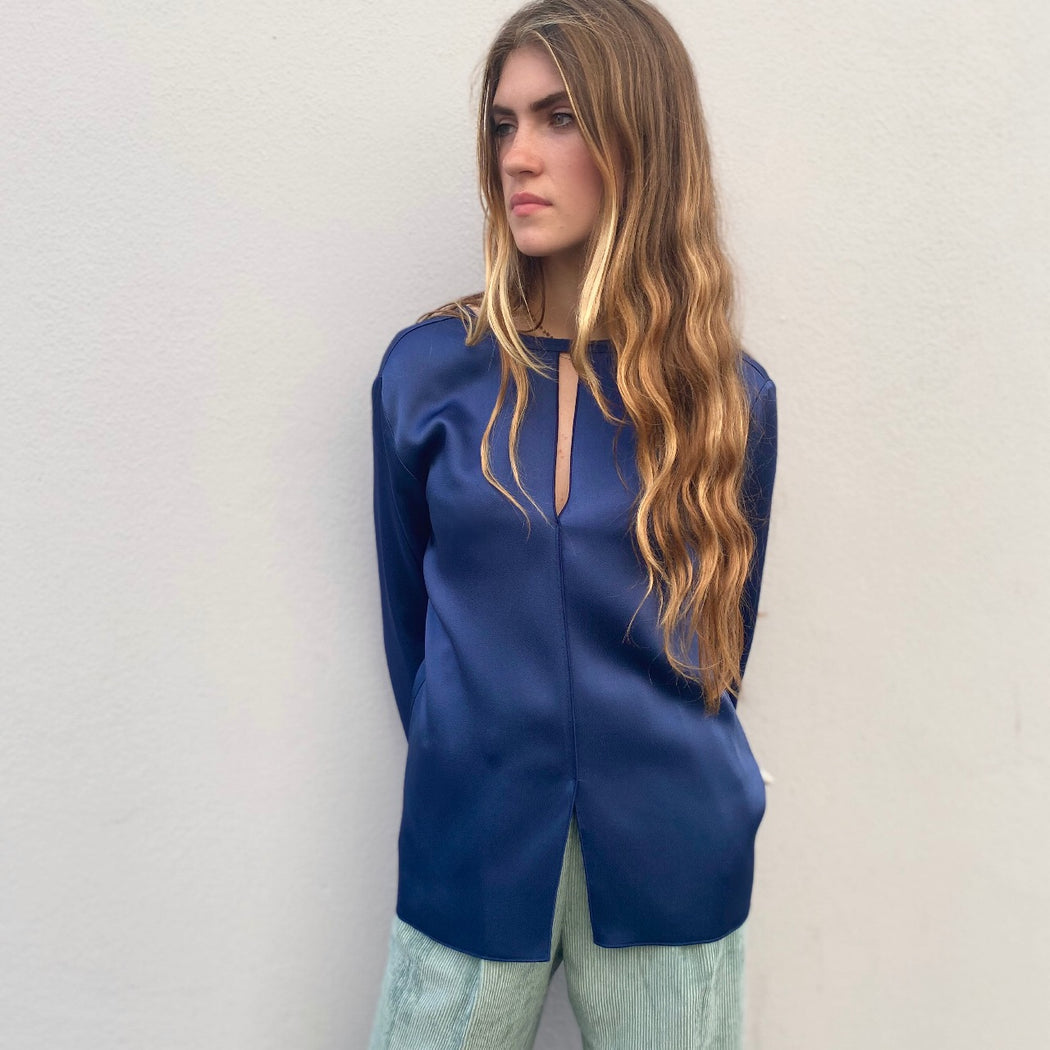 Forte Forte are masters of ethereal design and femininity This satin top is beautifully cut, with its keyhole neckline and slightly flared shape. A stunning top worn with trousers or jeans, teamed with a jacket, this is perfect evening or work look.