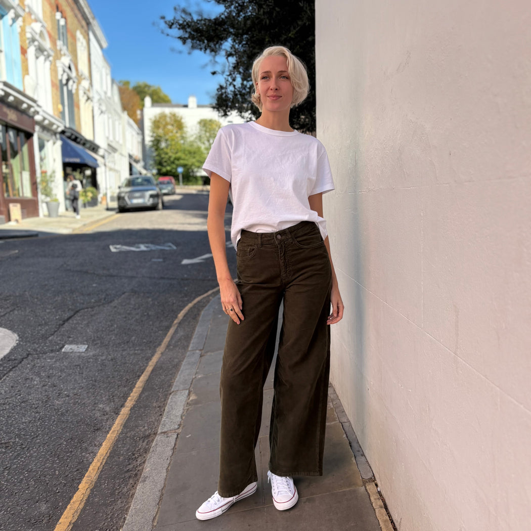 Flare and high waisted, the Bilboa cord trousers is a classic. Wear it with a soft and feminine shirt or with a basic white tee for a laid-back look.