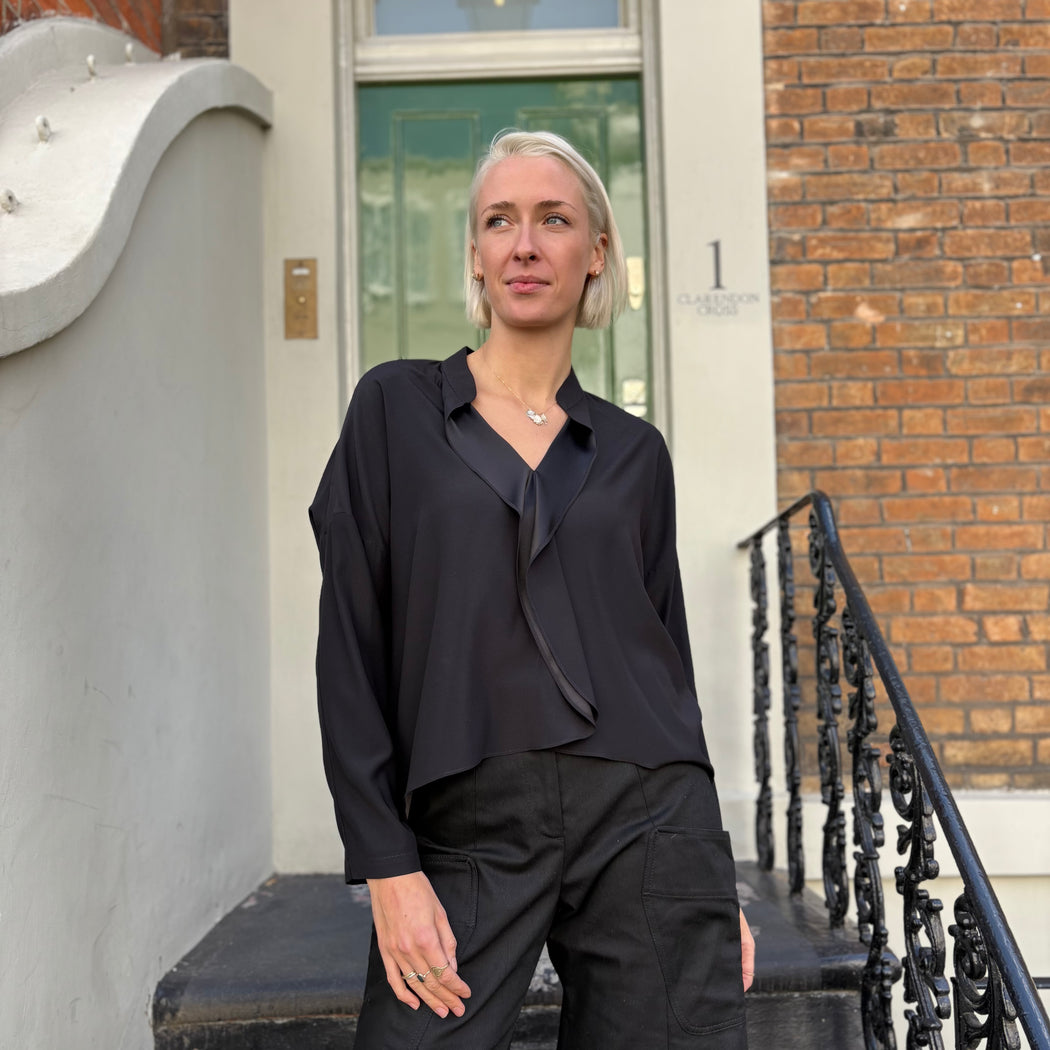 Zero Gaban Fin Black Long Sleeve Silk Shirt