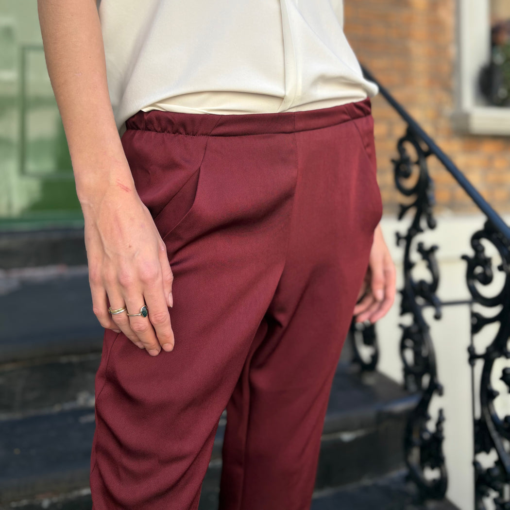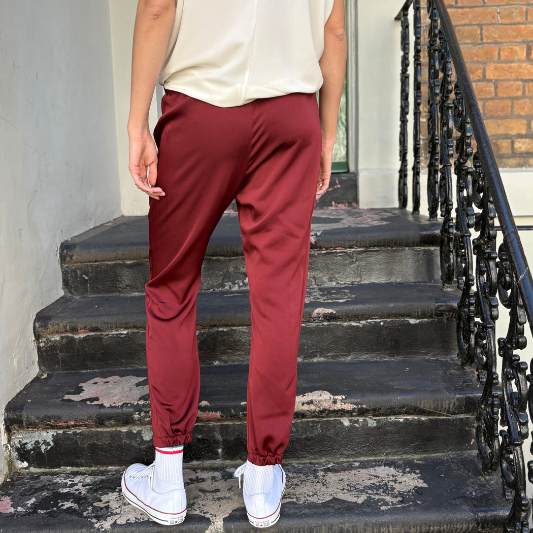 The best-selling Gabi Trousers in recycled drape feature hidden pockets on a curved front seam and an elastic detail at the back of the cuff. It has an elasticated waist and slips on.