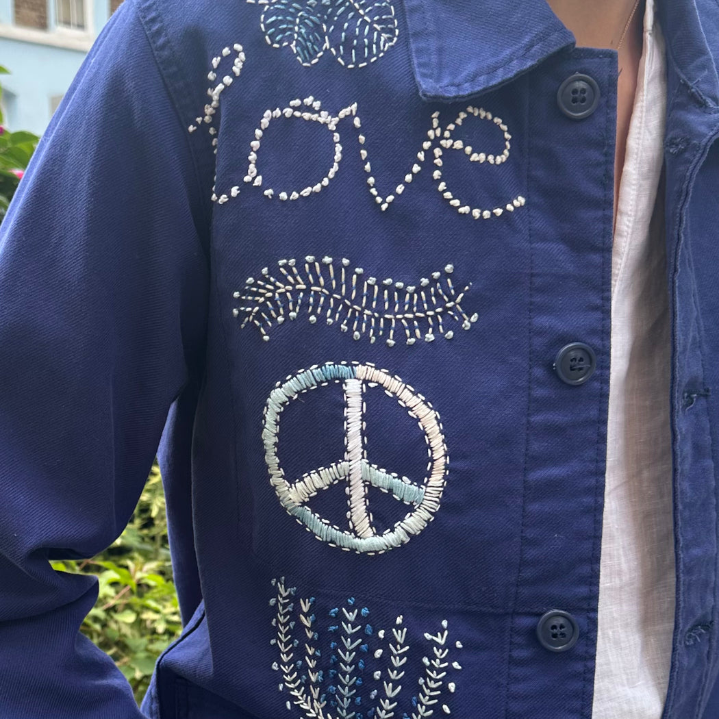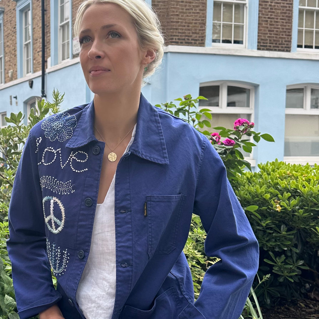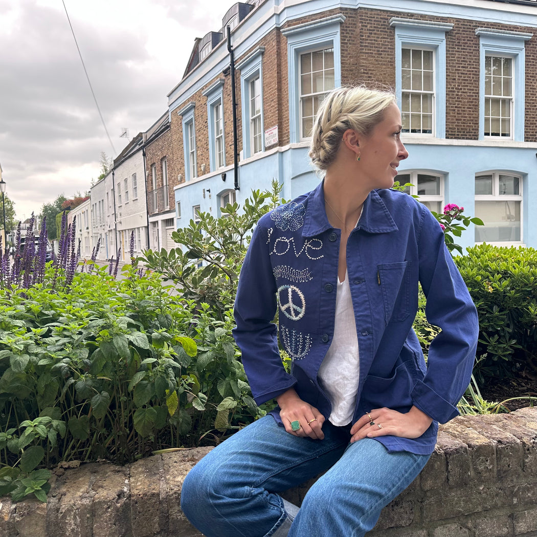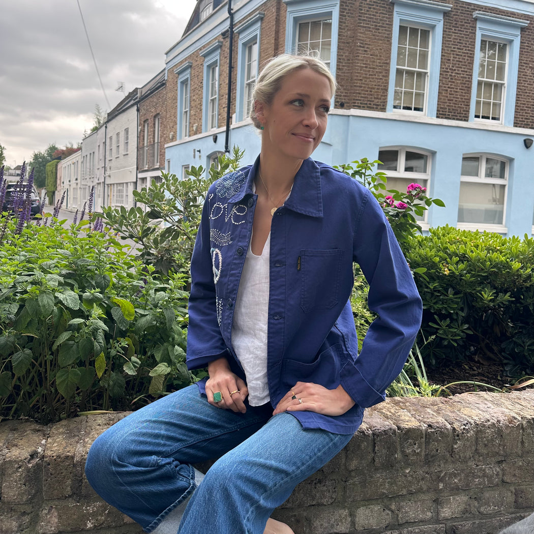 These vintage work wear jackets were unearthed in a beautiful vintage store in the Marais in Paris on our recent fashion week trip. Shirley has worked her magic on the vintage piece with her incredible embroidery.