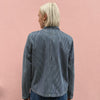orker’s jacket in organic cotton twill inspired by vintage workwear. It has a flat collar, recycled plastic buttons, two sewn on pockets at front, and one inner pocket.