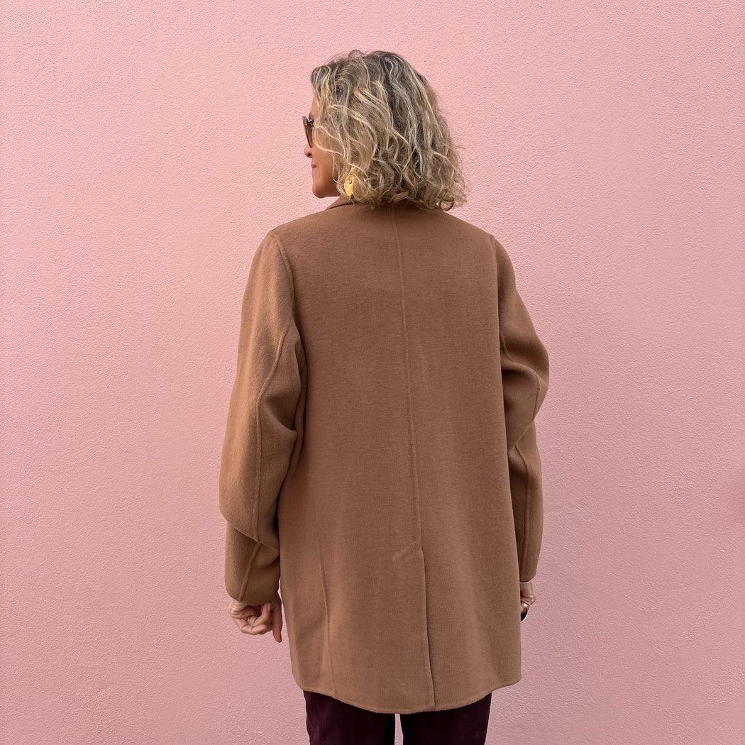 A winter staple - this boyish, soft grey, slightly oversized jacket is perfect alternative to your winter coat. It has long sleeves and a tailor collar, with two button fastening and pockets.