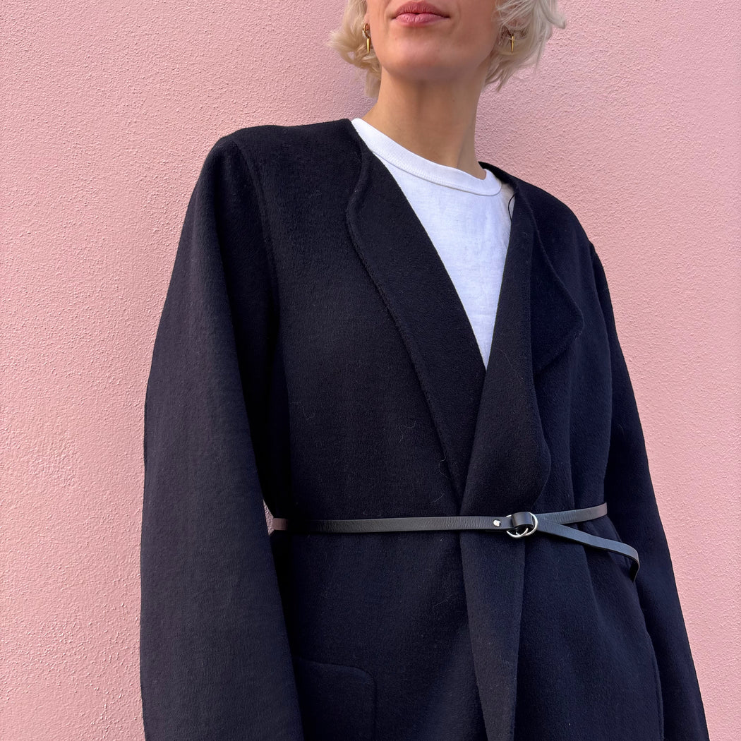 hThe Valeran coat is crafted in a double-faced wool to create a warm, light piece. A beautiful drape to this piece with an added detachable accessory to use as a wrap around scarf. This coat fits true to size, take your normal size.