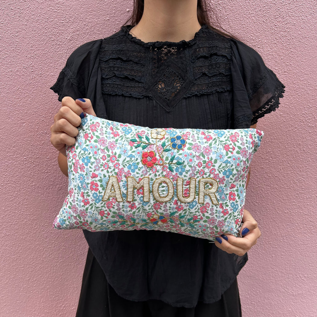 CSAO Amour Blue and Pink Floral Mini Cushion My cart