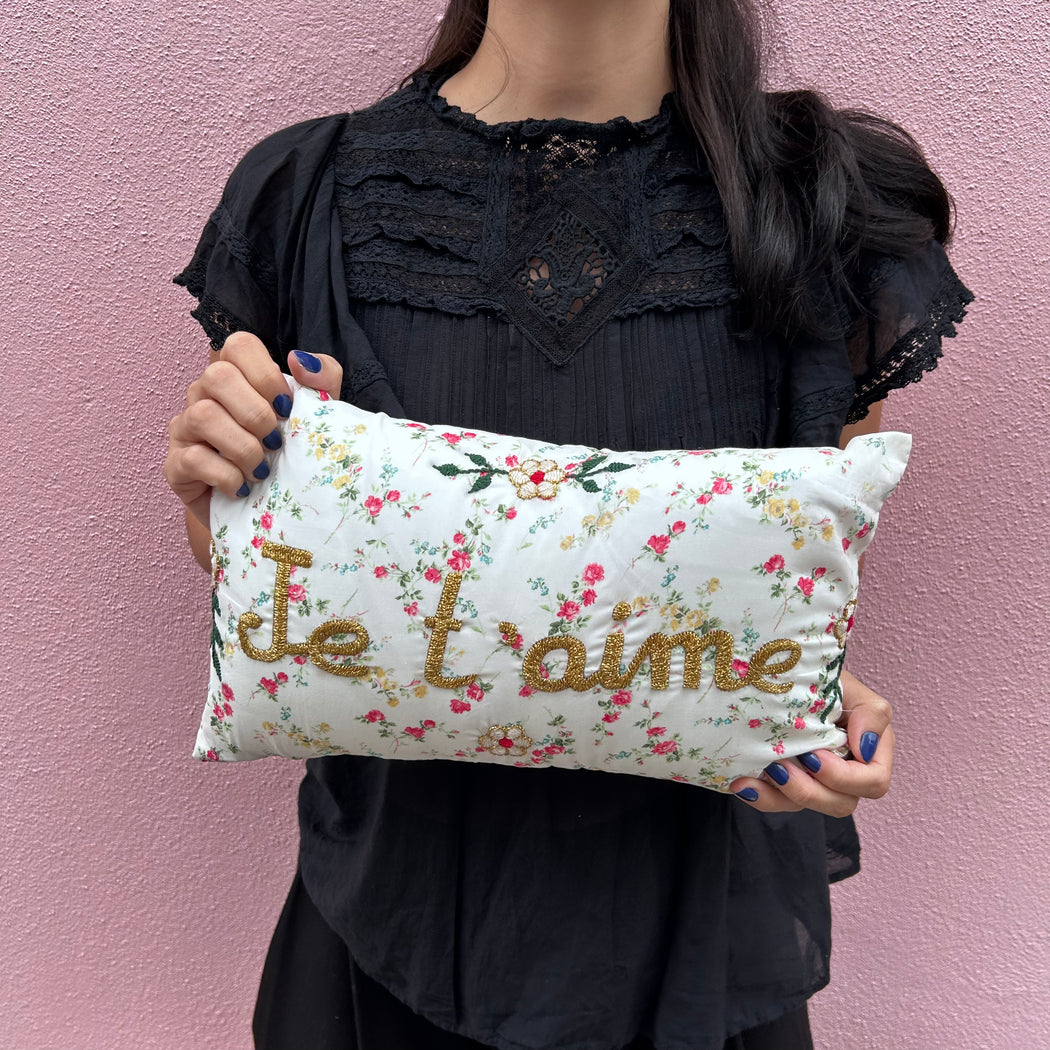 CSAO Je Taime White and Red Floral Mini Cushion