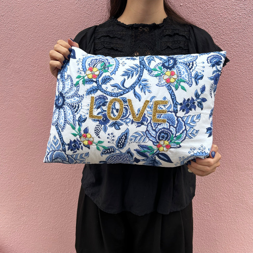 CSAO Love White and Blue Floral Cushion