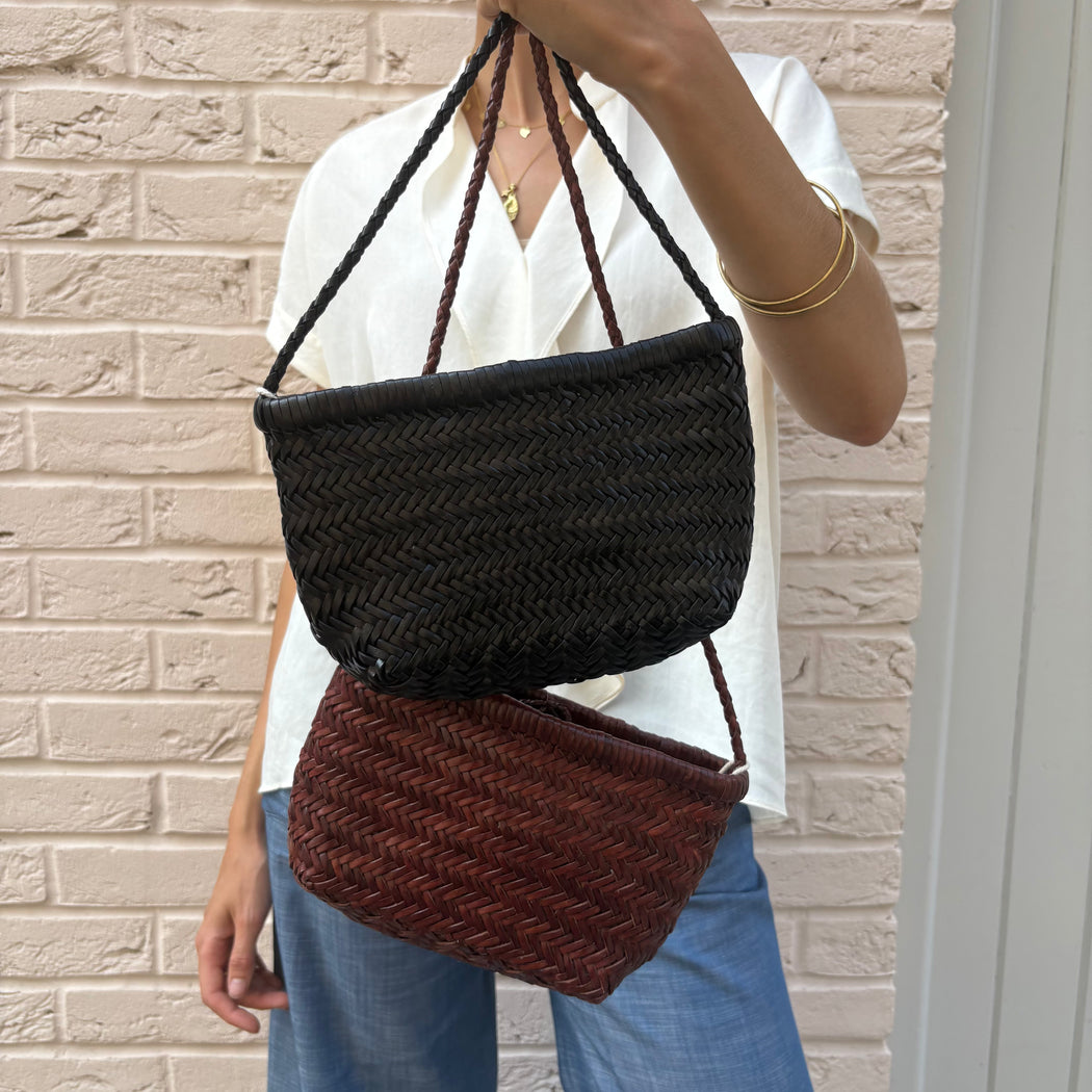 Dragon Diffusion are a collective of artisan leather weavers, each bag crafted entirely from hand, so no two pieces are alike, if you find a curve in the weaving or two-tone shade, this is due to Dragon Diffusion's unique process. From the pragmatic intelligence of the craftsman-creator with an obsession for handwoven bags, usually made from vegetable fibres and used daily as practical carry bags in indigenous communities on islands, atolls and remote coastal areas - these basket bags can be found in almost all countries in the world.