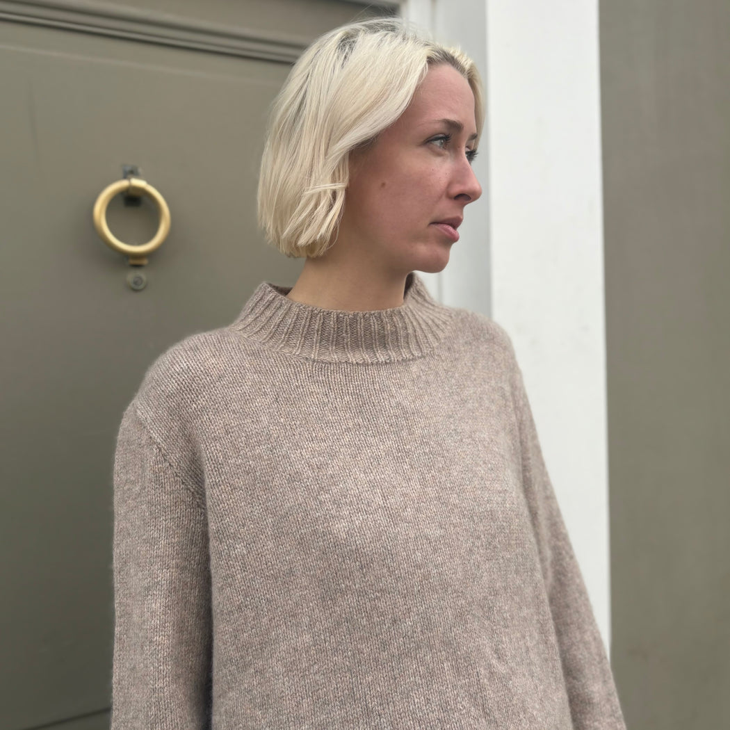 One-size only, designed to be oversized and slouchy, with a high collar that is not swamping. Once owned, it becomes your go-to jumper.
