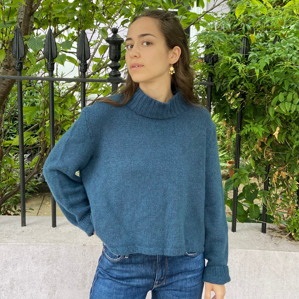 English Weather’s signature sweater. The Sloppy Jo burst into this world off a pair of knitting needles, somewhere in London, in the early 2000s. Now it has been reinvented in a crop fit with its classic neckline and overall.
