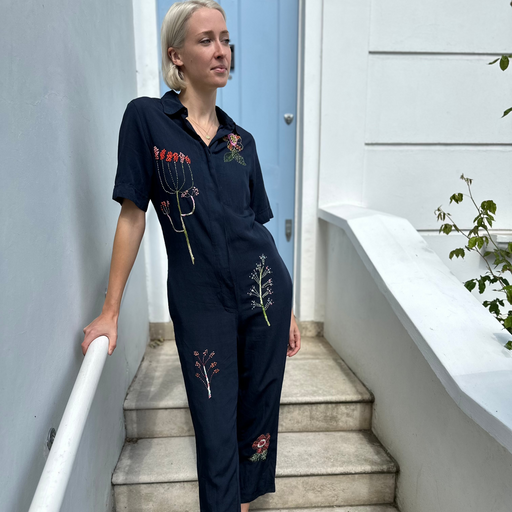 Pomandere Embroidered Linen Jumpsuit
