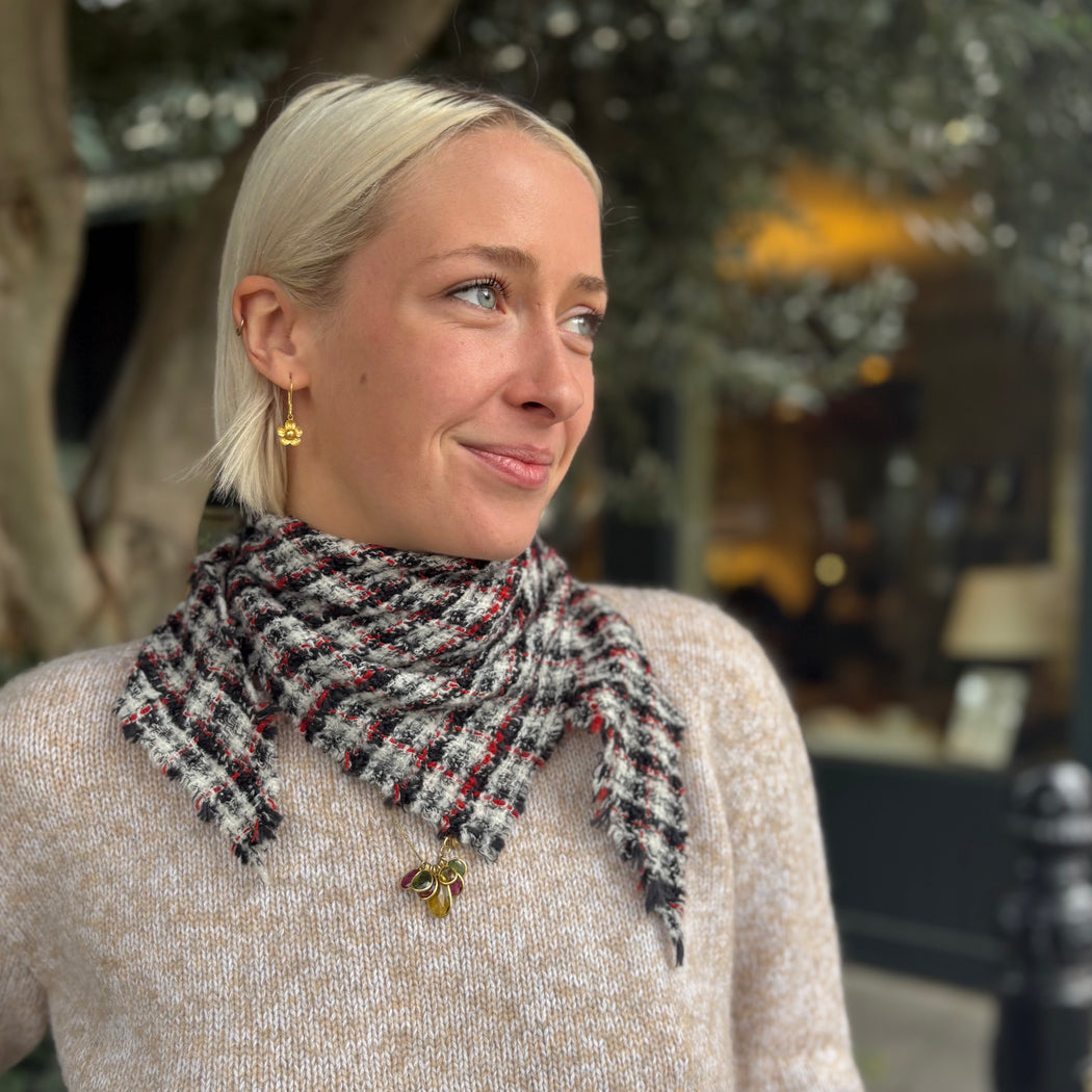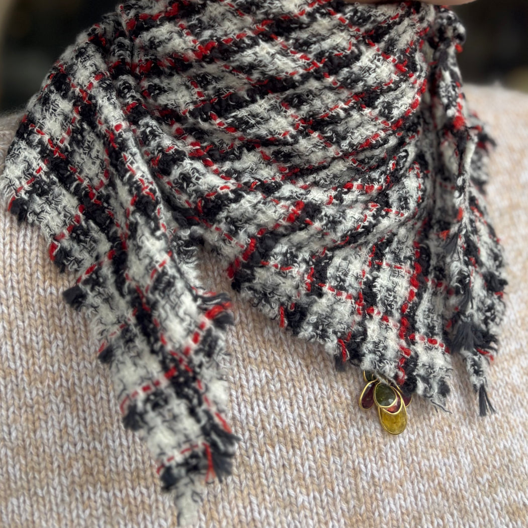 Faliero Sarti Alida Light Grey and Red Check Triangle Scarf