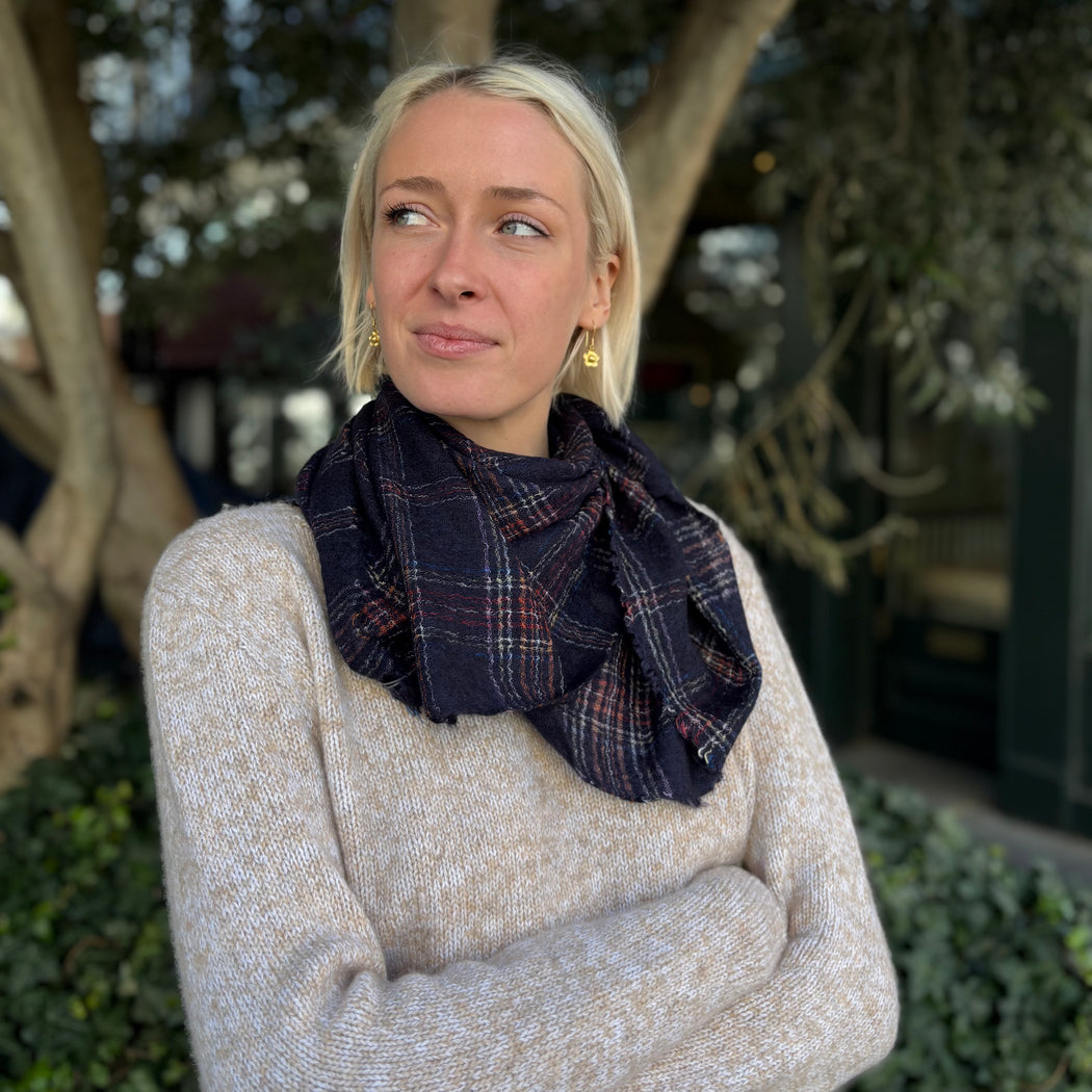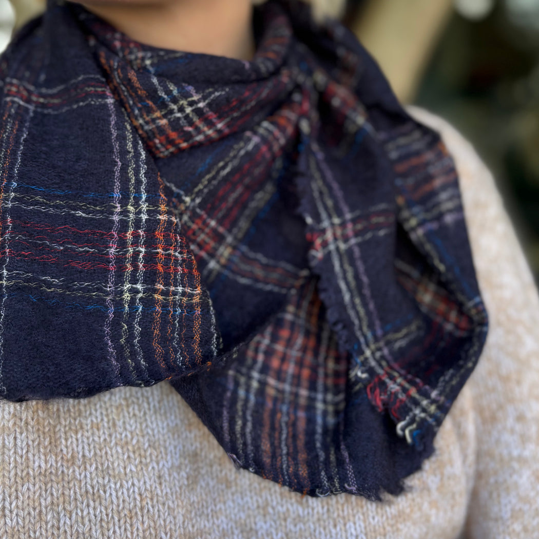 Faliero Sarti specialise is the most irresistible fabric blends to create the softest of scarves, once you have one, you will want more. This pure cashmere style in a dreamy neon check has a frayed edge and is in a fine, lightweight knit.