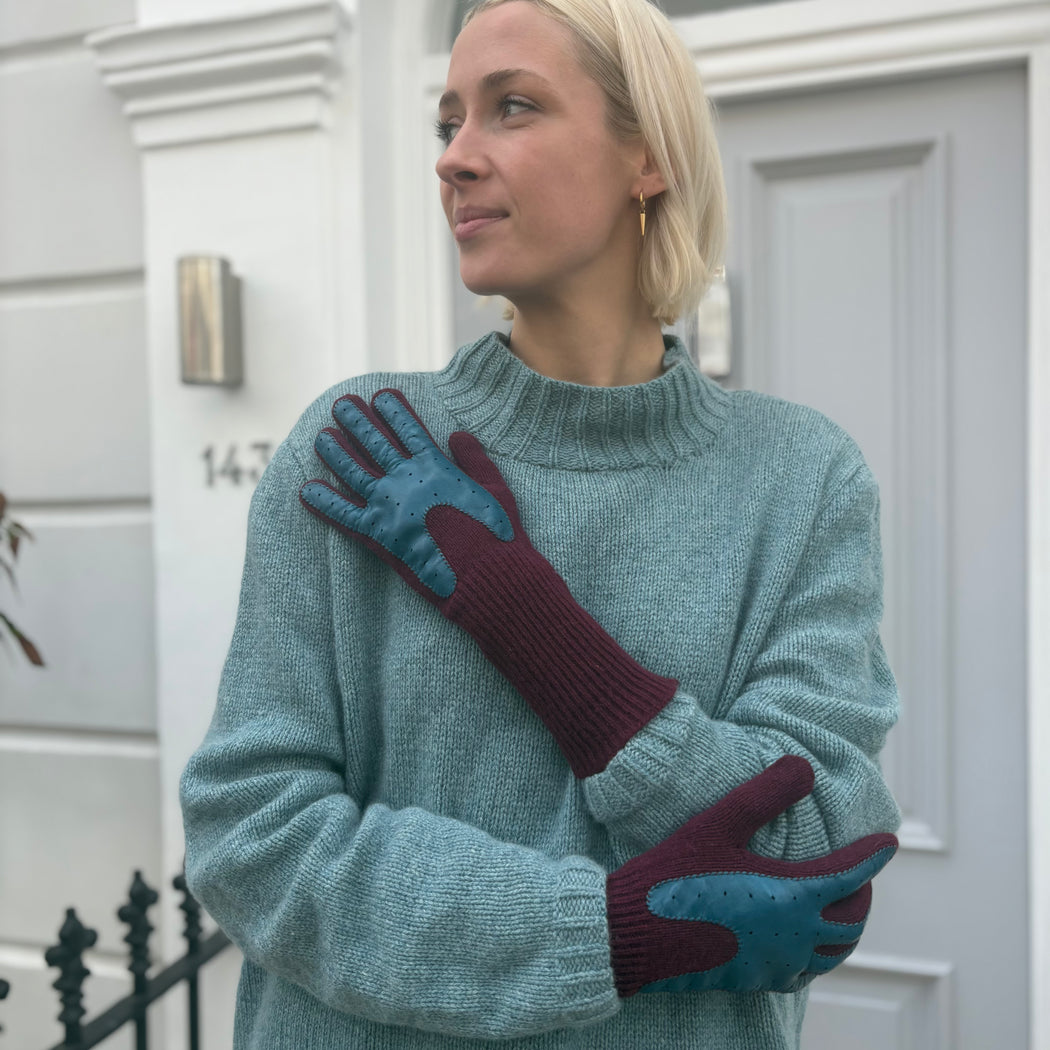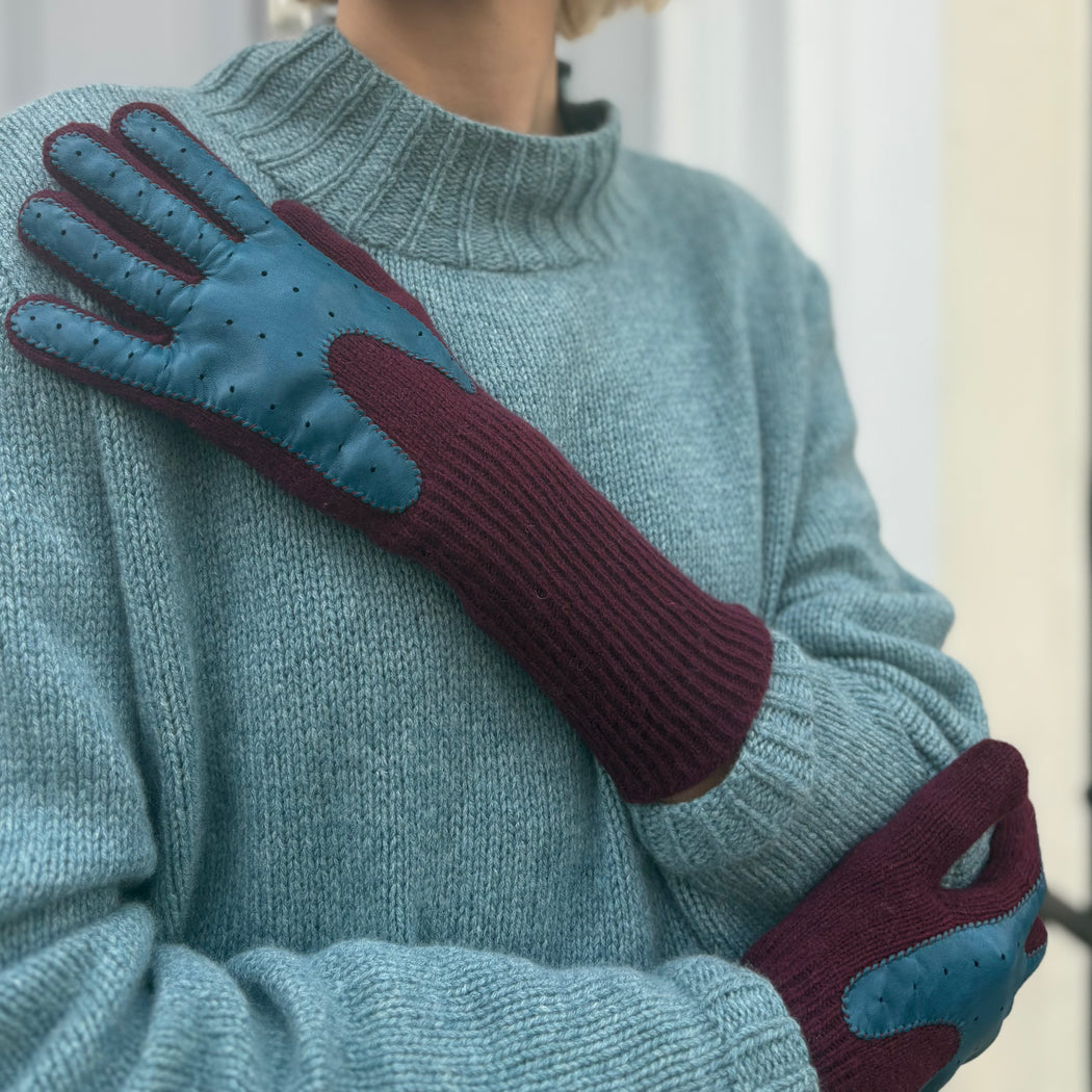 Exquisite J Wool And Leather Burgundy Gloves