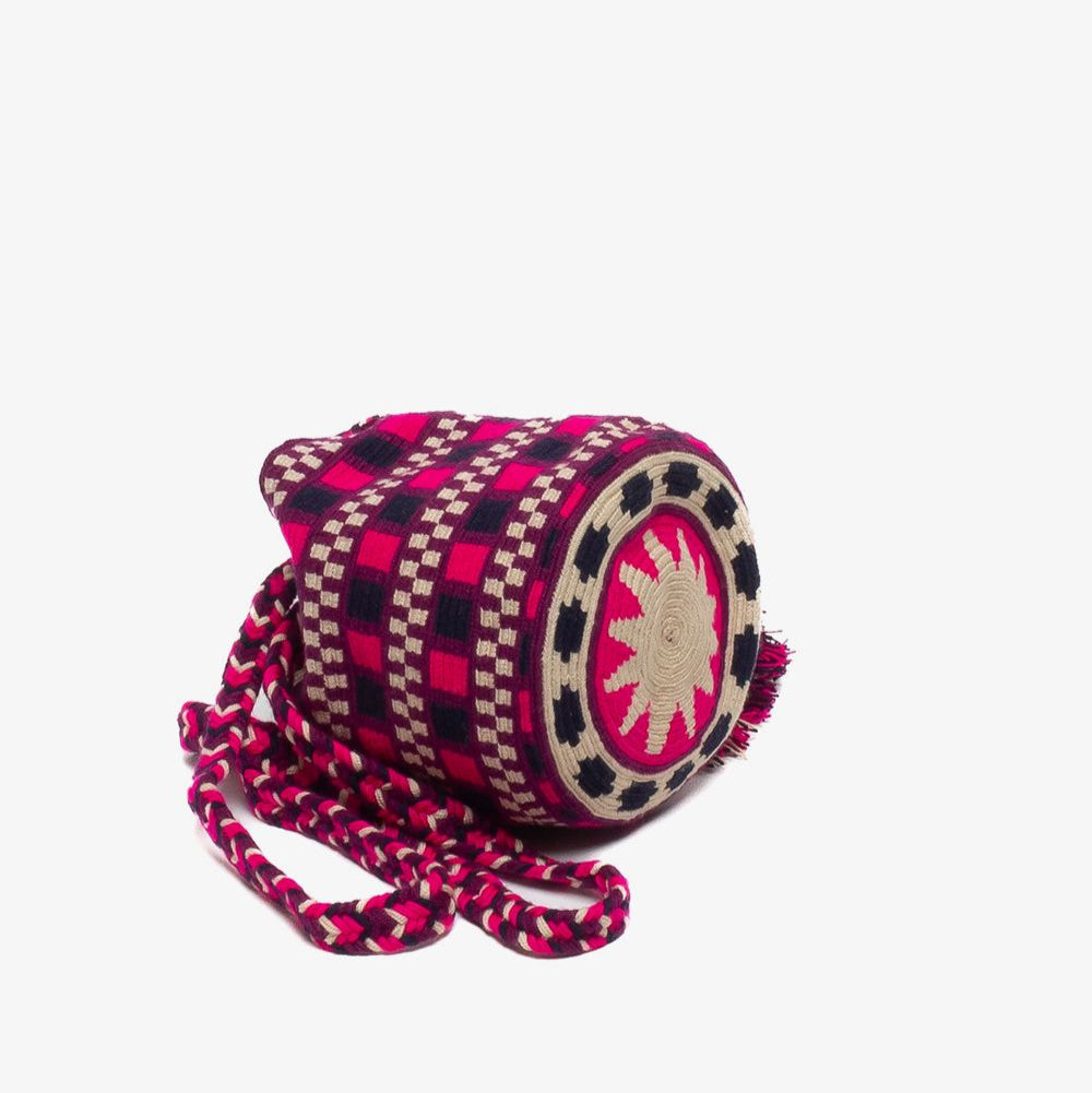 Every bag is handmade with a uniqueness, each collection lets us travel through a sea of colours, patterns and shapes. Guanabana wants to tell new stories through weaving in Colombia, designing in Madrid and hand made by Wayuu artisans who crochet and make our hand bag dreams a reality! Finished with two pompoms and a bronze medal with the words BE POSITIVE. Exactly what we like to hear!