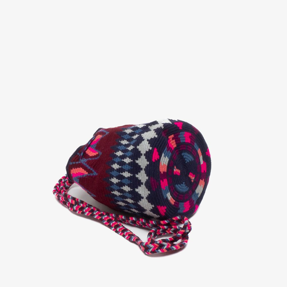 Every bag is handmade with a uniqueness, each collection lets us travel through a sea of colours, patterns and shapes. Guanabana wants to tell new stories through weaving in Colombia, designing in Madrid and hand made by Wayuu artisans who crochet and make our hand bag dreams a reality! Finished with two pompoms and a bronze medal with the words BE POSITIVE. Exactly what we like to hear!