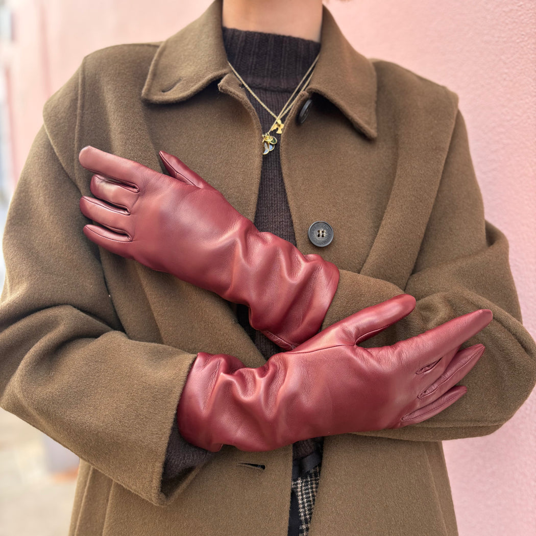 Agnelle Christina Cashmere Lined Leather Bordeaux Gloves