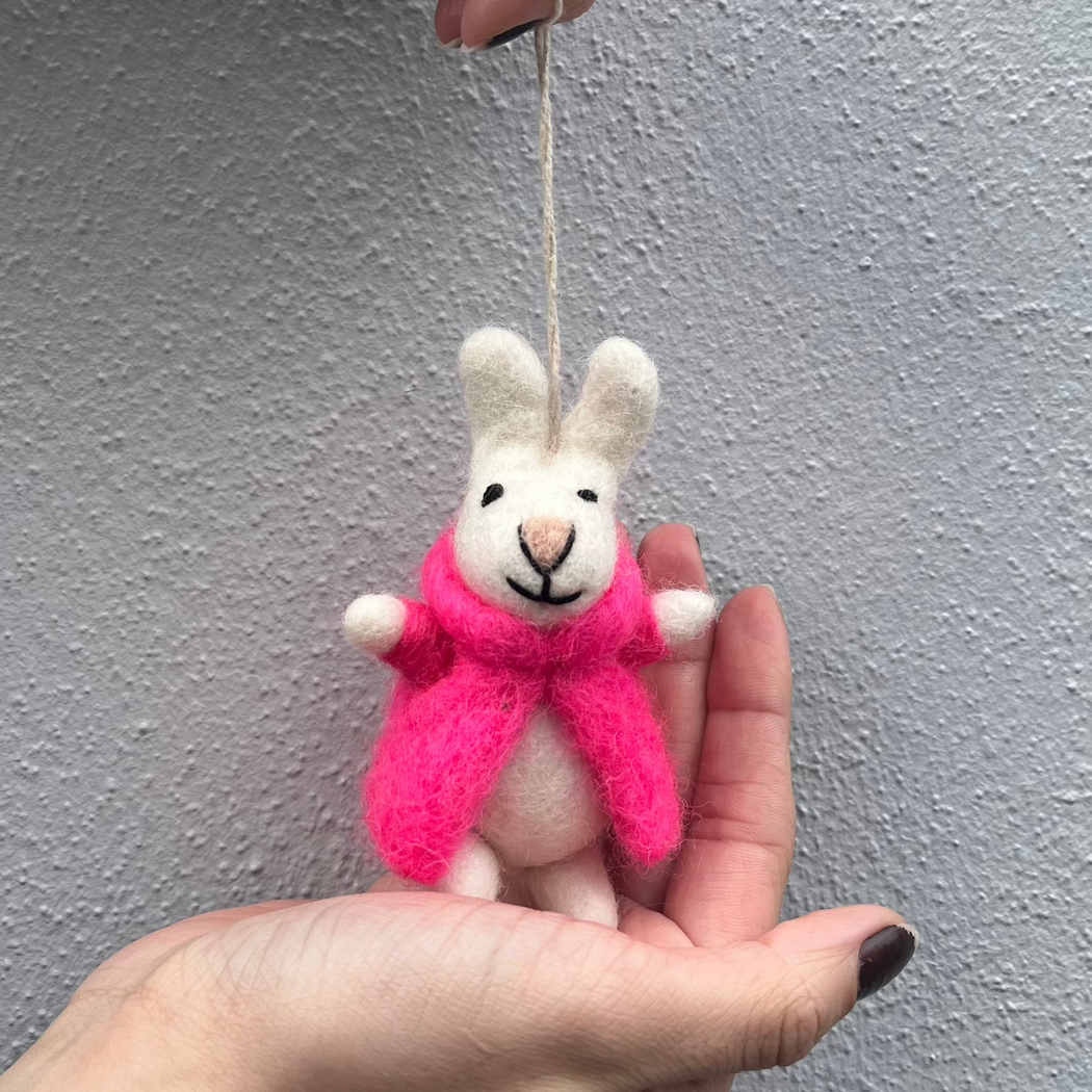 Bunny with Pink Coat Felt Ornament