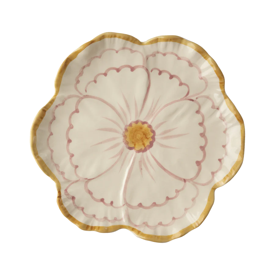 Set a lovely cake table with this beautiful ceramic cake plate. It is hand-painted with a delicate blue scallop around the rim and red flowers in the centre. Each plate is hand-painted by a group of amazing Portuguese women, making every single plate truly unique. We think it’s so charming.