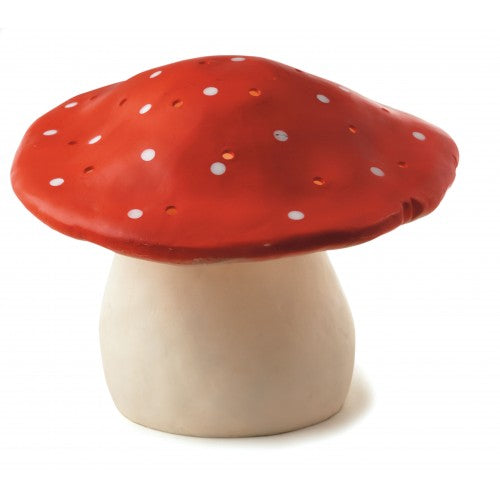 With the night light Big Mushroom Red, a whole dream world opens up! The nightlight gives a very soft and veiled light and will help the little ones to fall asleep without fuss. Lighted or not, the Mushroom is always a lovely decorative object. Traditionally made and painted by hand. For the safety of the kids, supplied with LED system of 1.5 W.