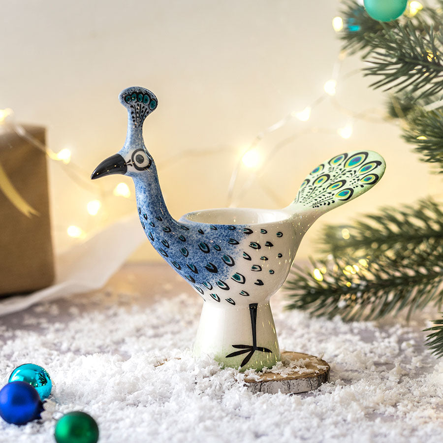 This beautiful handmade ceramic Peacock Egg cup, designed by Hannah Turner is certainly a collector's piece!