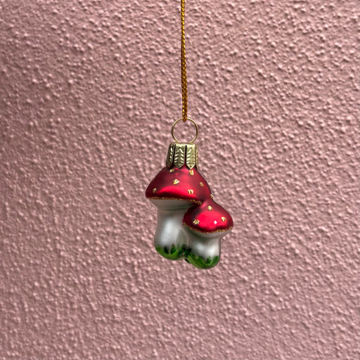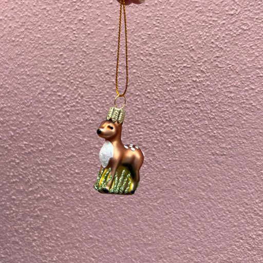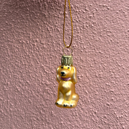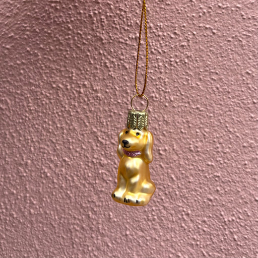 Gold Mini Teddy with Pink Bow Glass Christmas Ornament