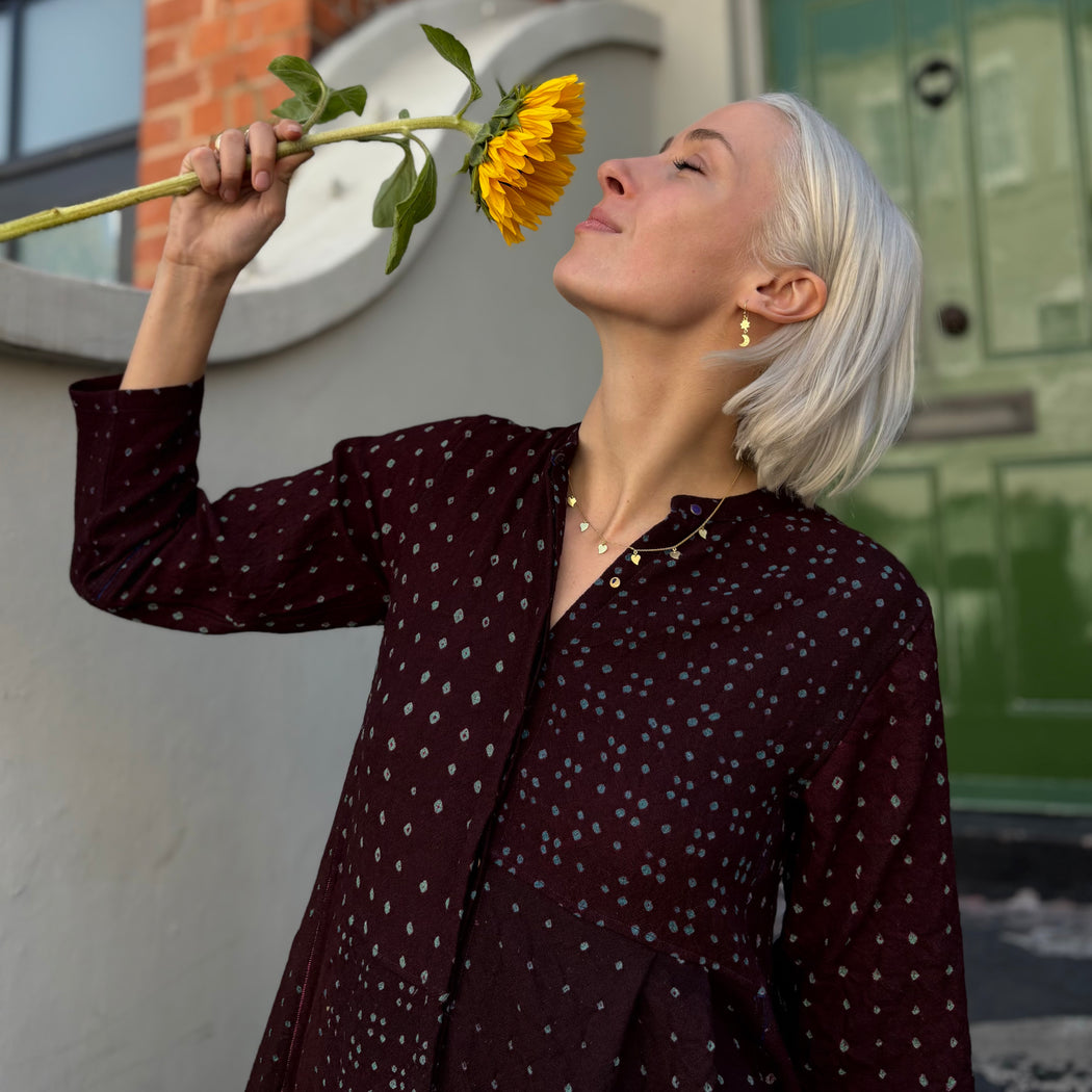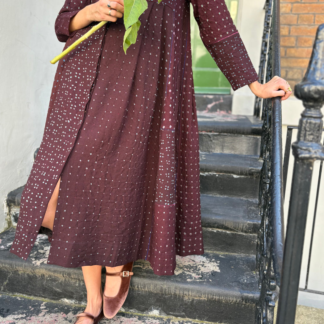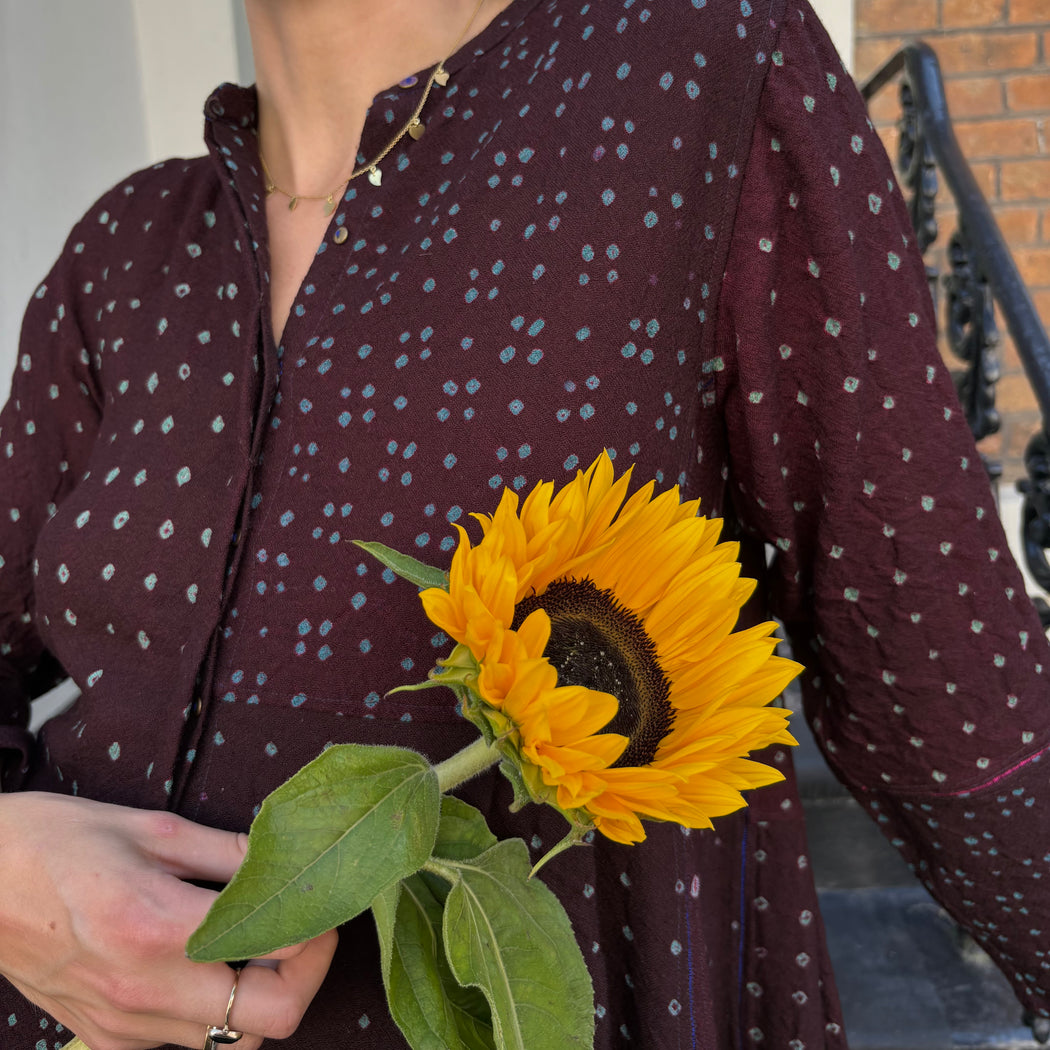 Injiri Maroon and Light Blue Shibori Dress My cart