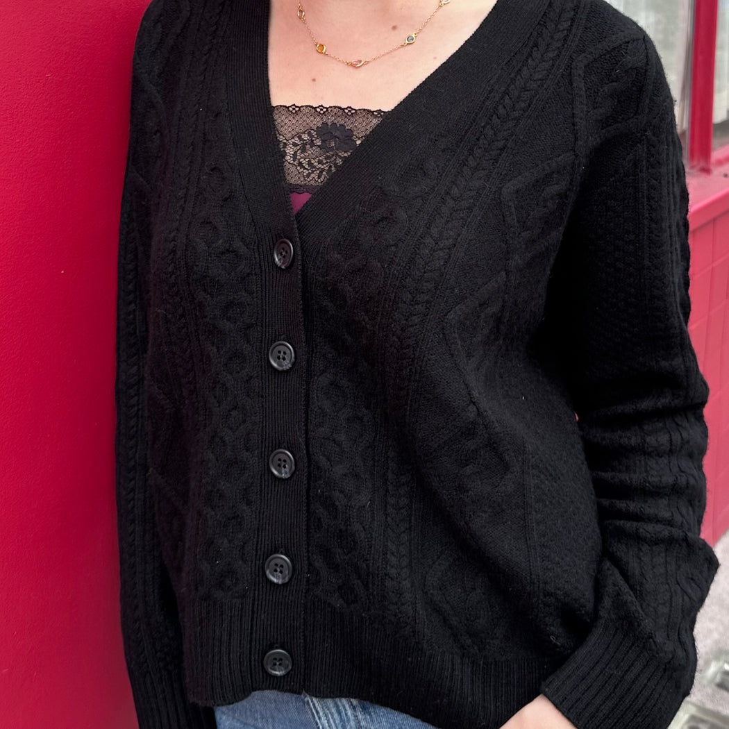Jumper 1234 Black Aran Cardigan