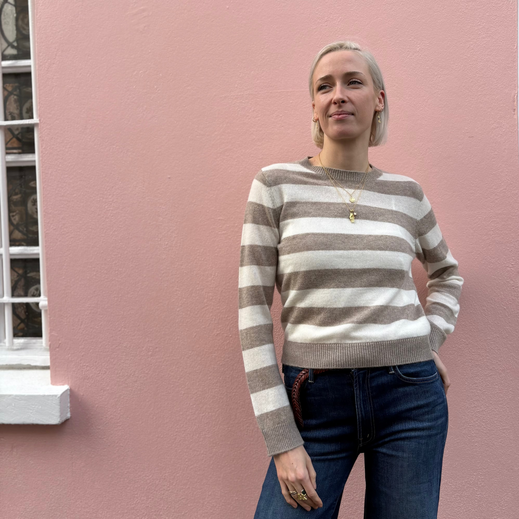 Jumper 1234 Light Brown and Cream Stripe Sweater