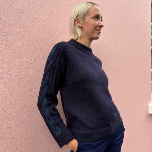 Bella Freud Navy Mohair Cable Jumper