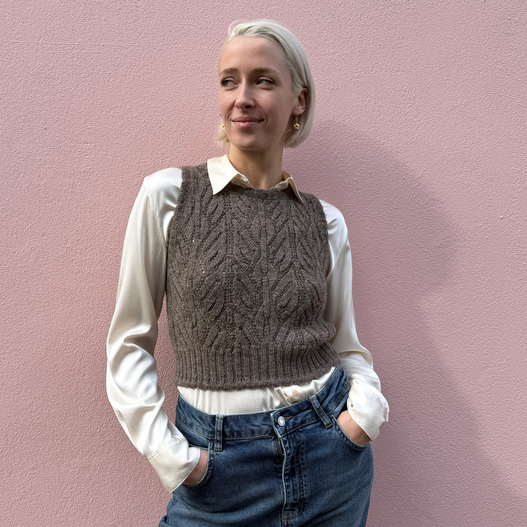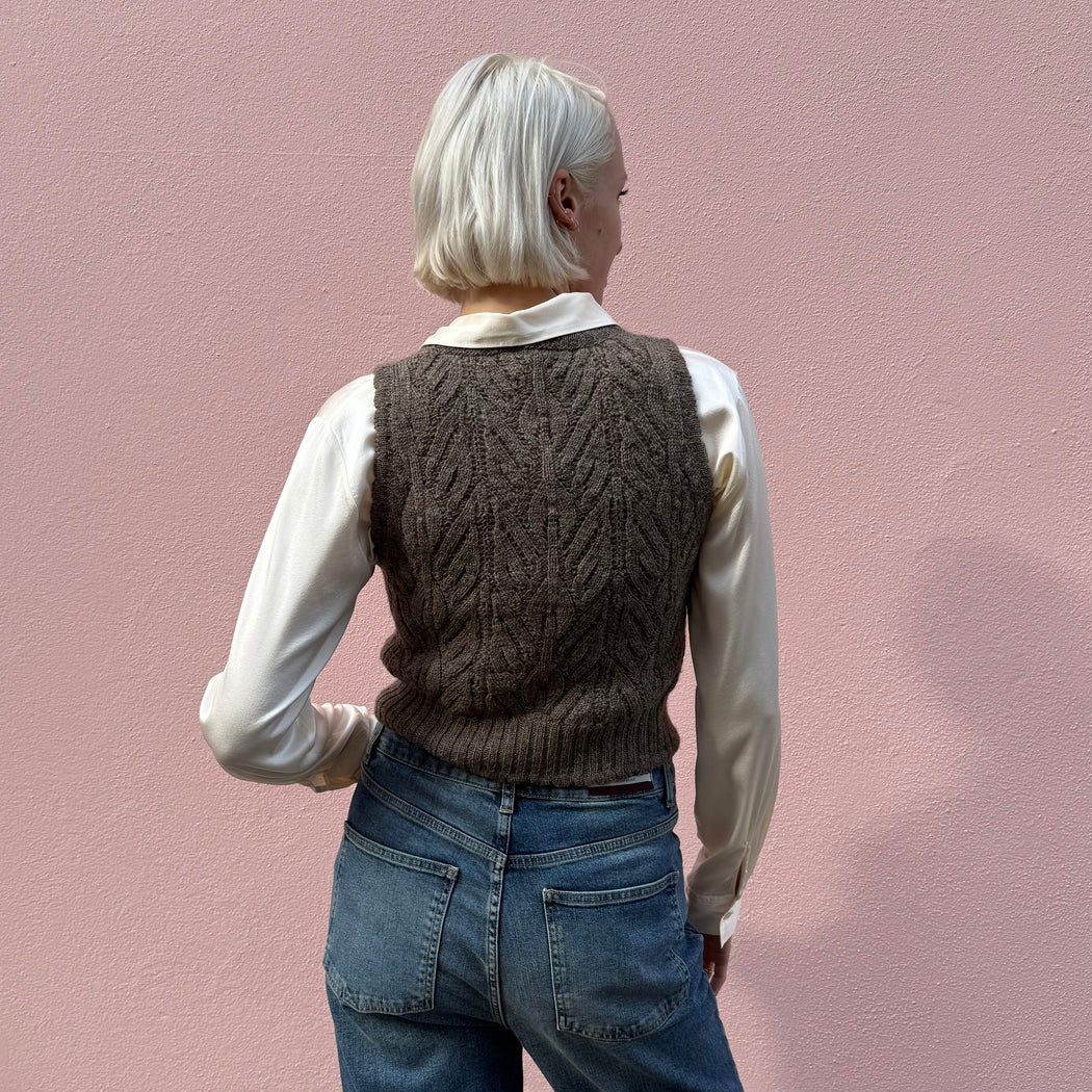 The Wyre Vest is made from Herd Wool - sustainable soft Bluefaced Leicester sheep wool grown N.W. England and processed within 150 miles of the farms according to Fibreshed principles. The yarn is either undyed or dyed using plant extracts and naturally occurring mordants. The buttons are made from nuts, our labels are 100% cotton, so your knit is fully circular.