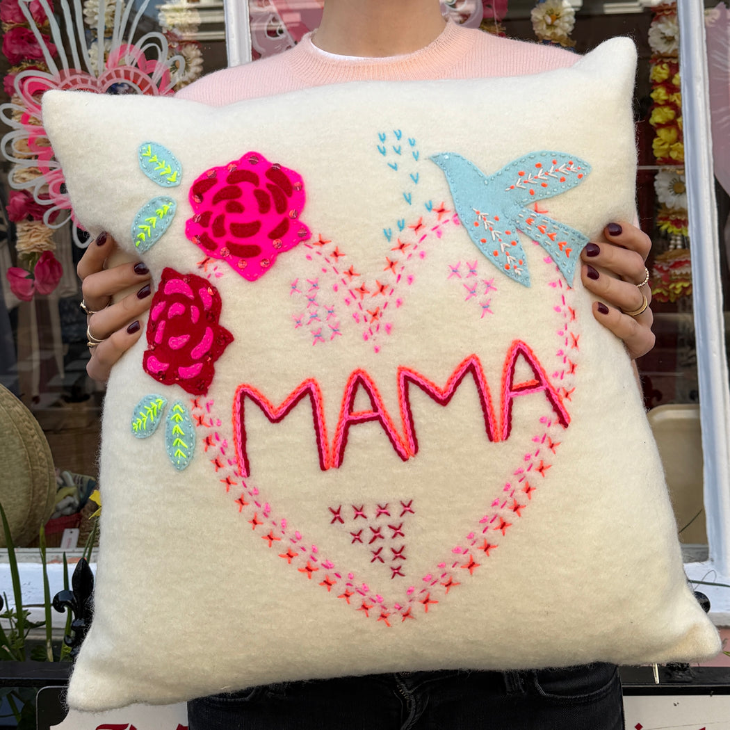 Hand Embroidered Mama Rose Cushion