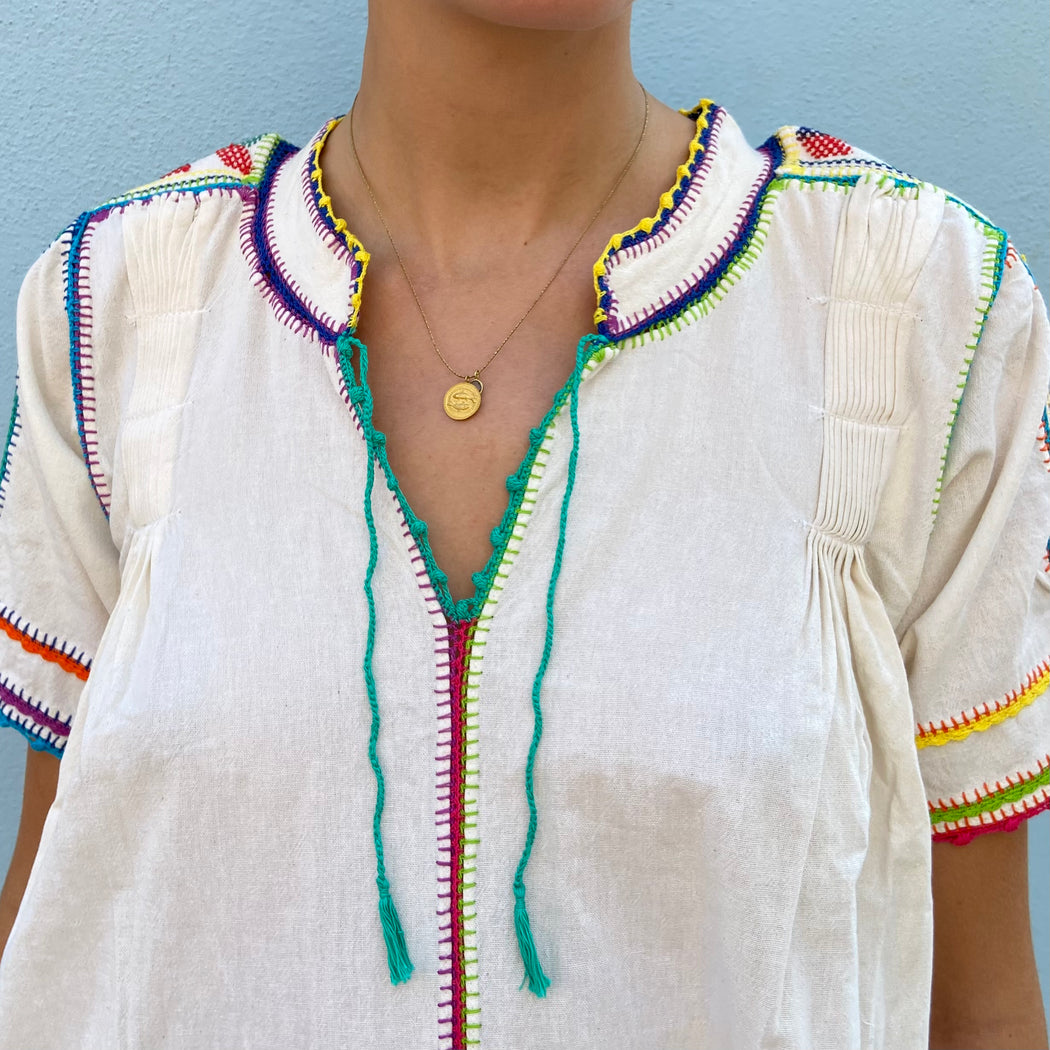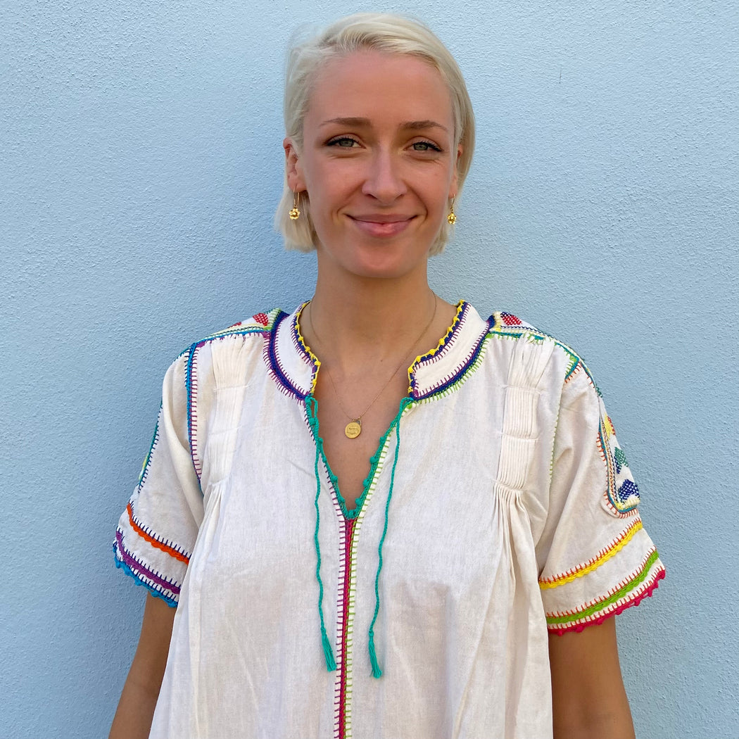 Victoria Martínez Velasco, a designer and supporter of the textile arts is responsible for many of Matta's beloved pieces from Mexico. This style is made entirely made by hand by a cooperative of women in the valleys around Oaxaca.