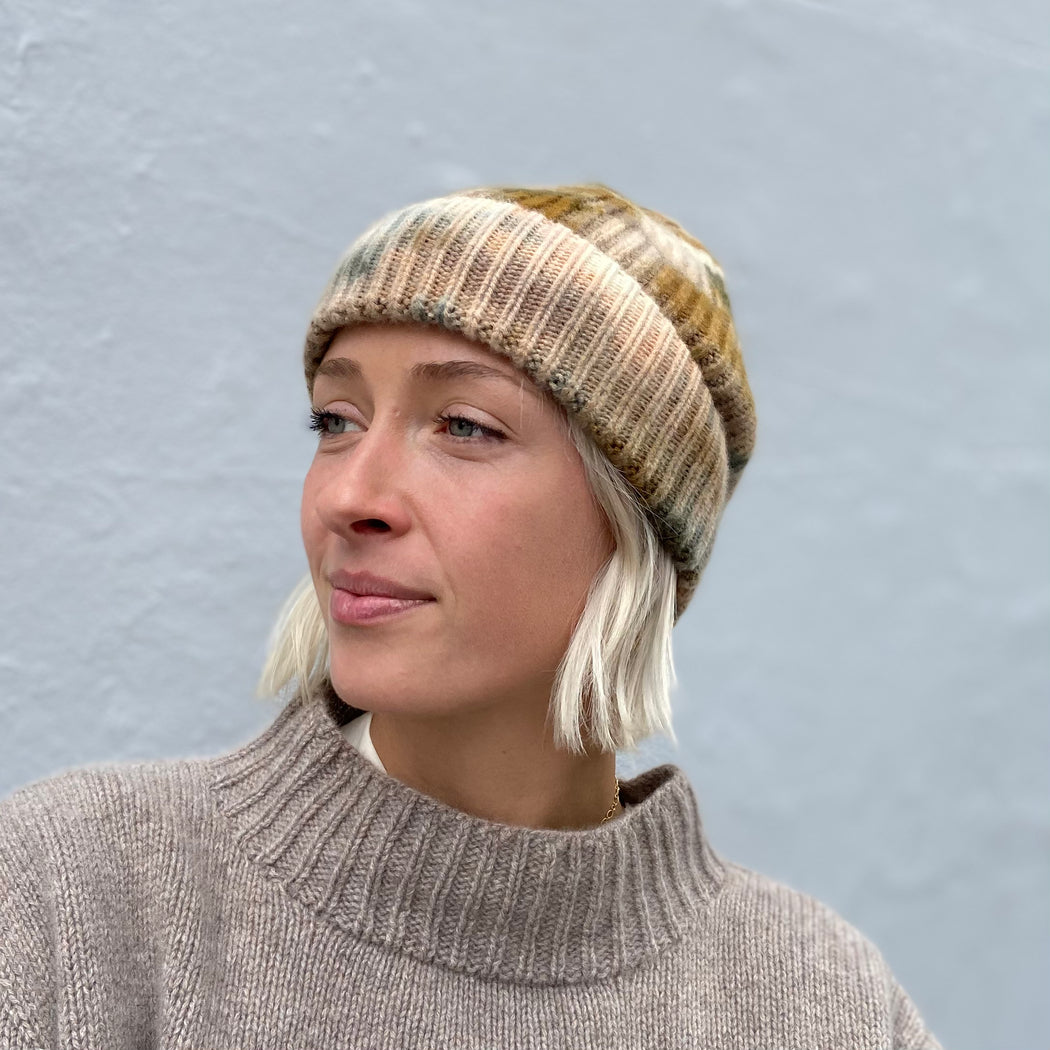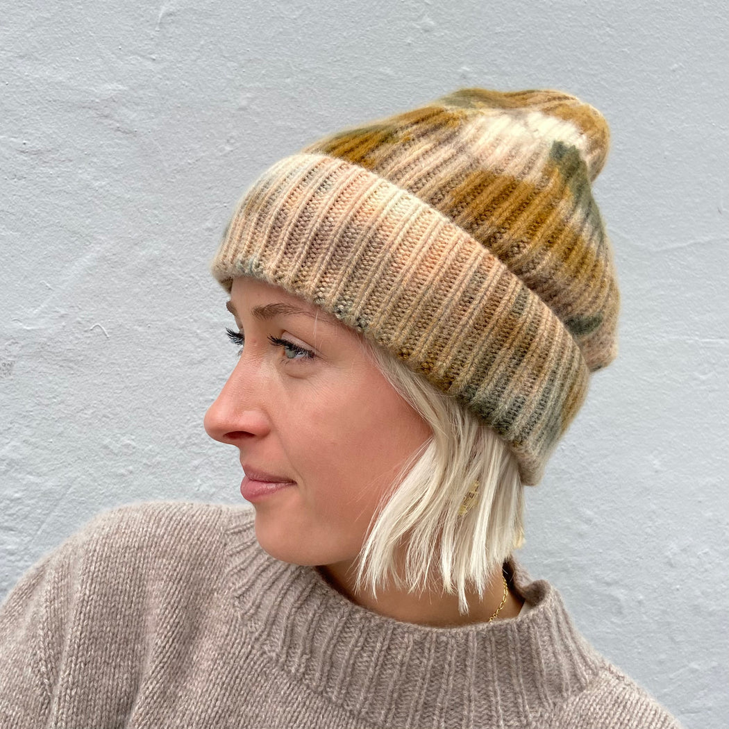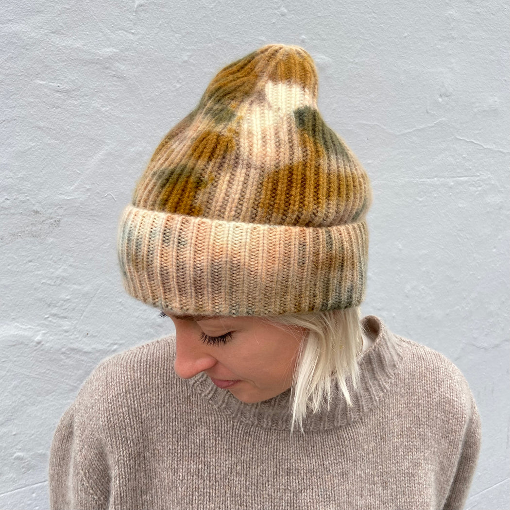 Mouleta Khaki and Brown Tie Dye Cashmere Beanie Hat