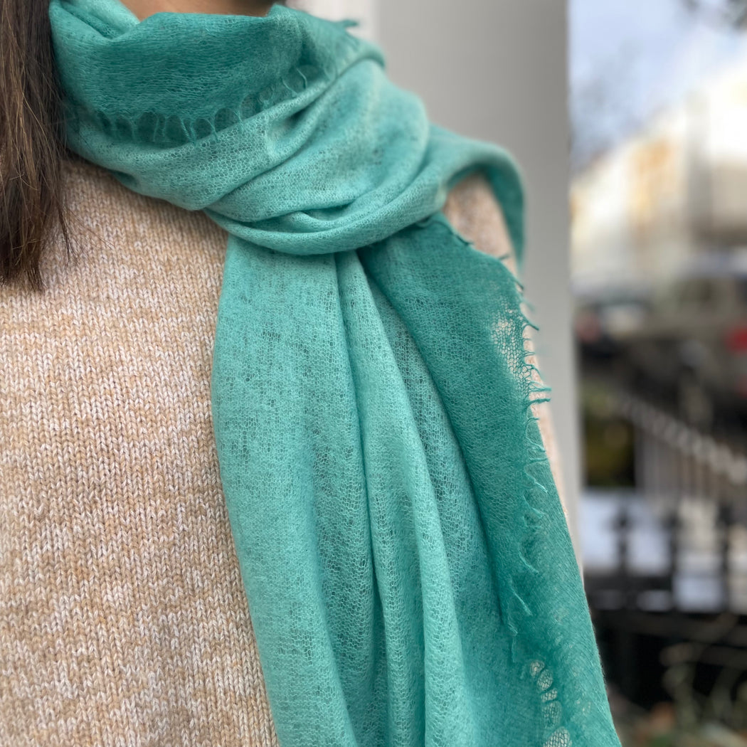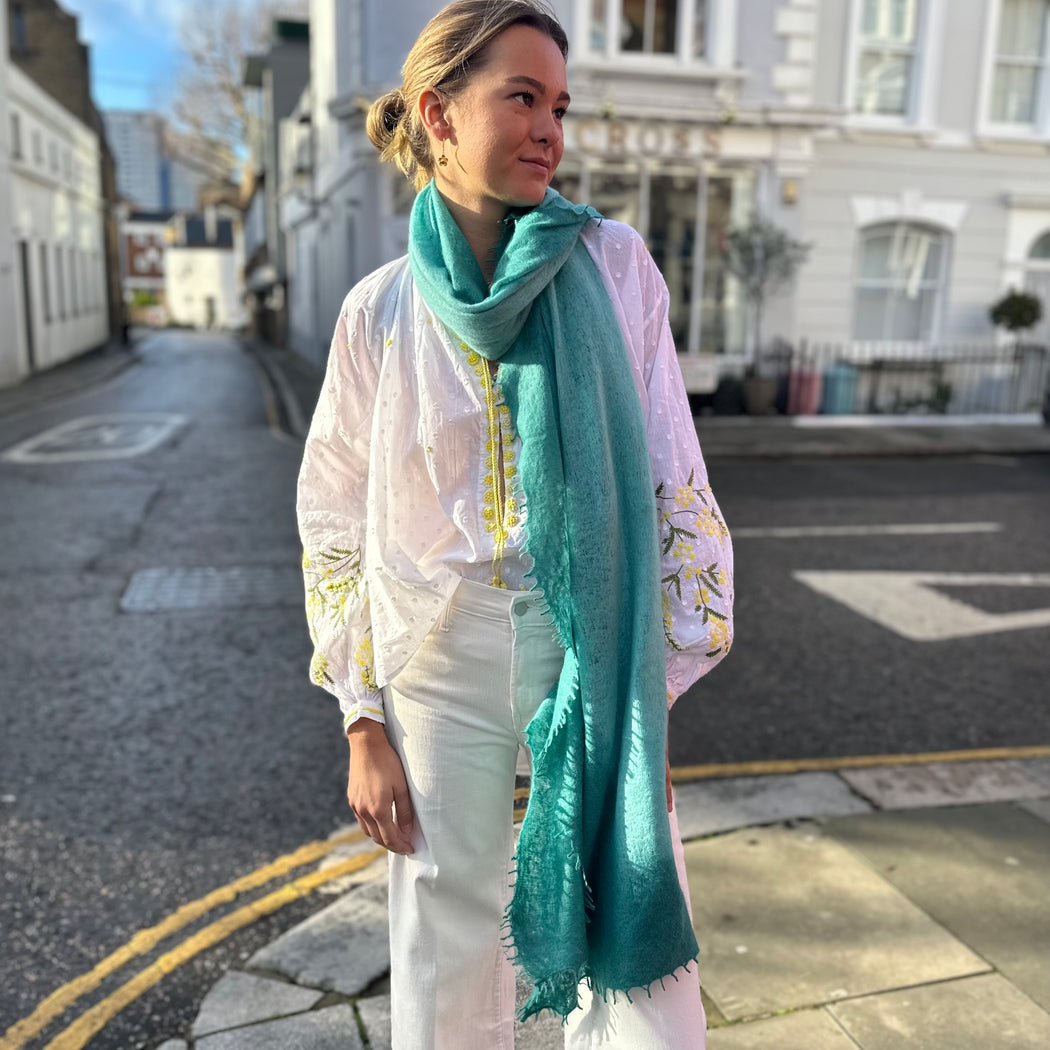 Mouleta Teal and Light Green Cashmere Scarf