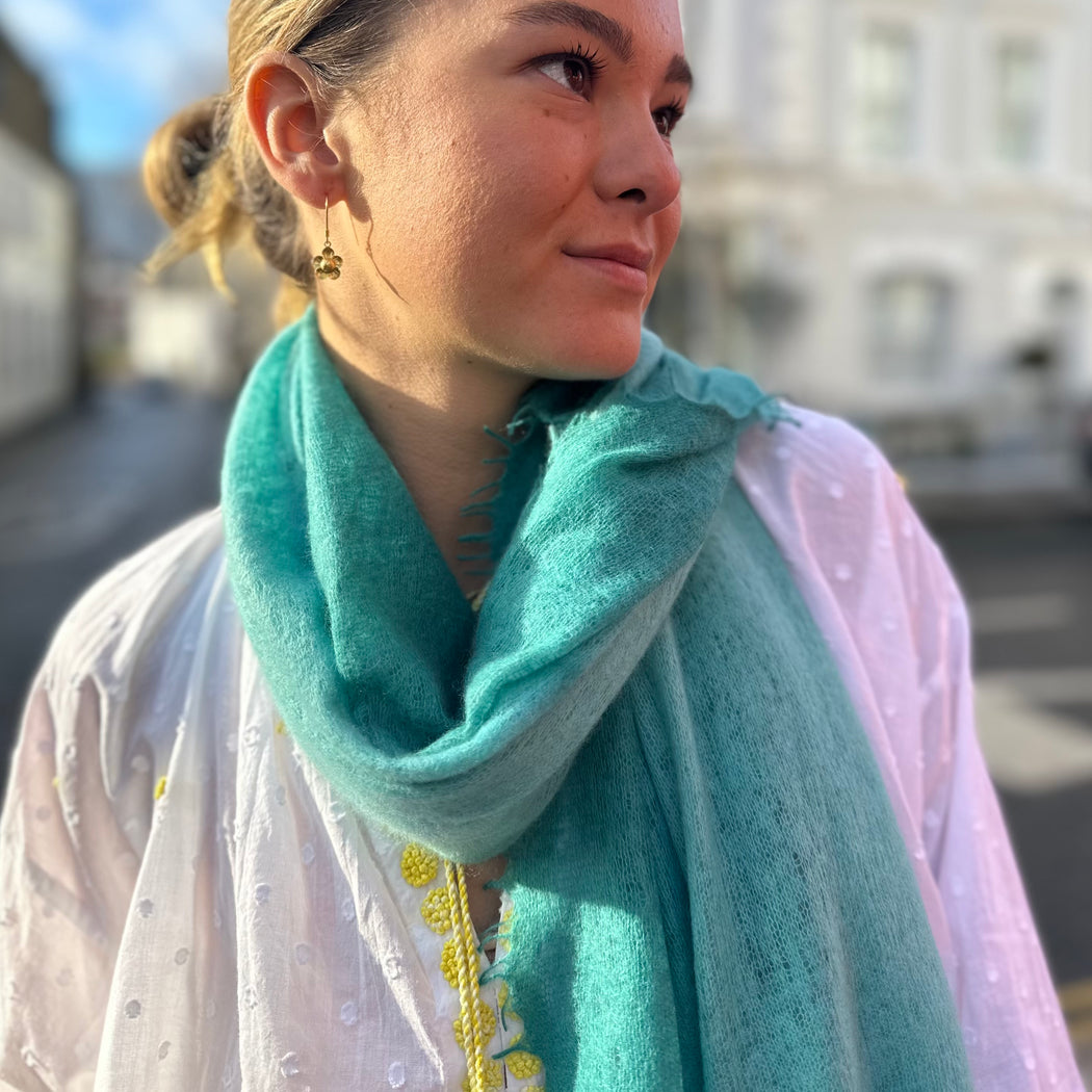 Mouleta Teal and Light Green Cashmere Scarf My cart