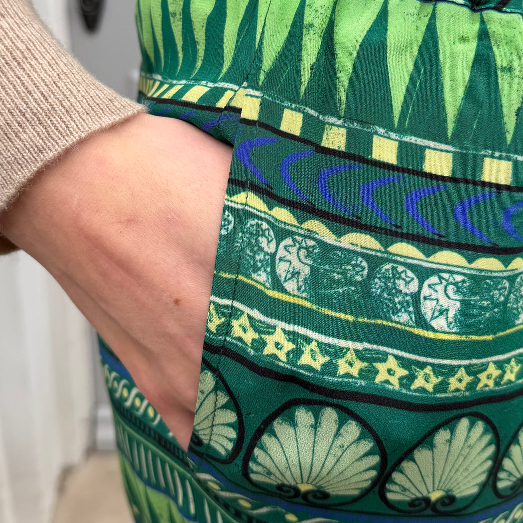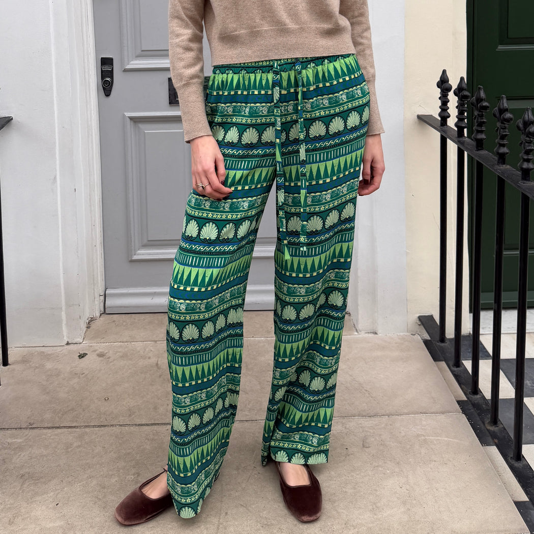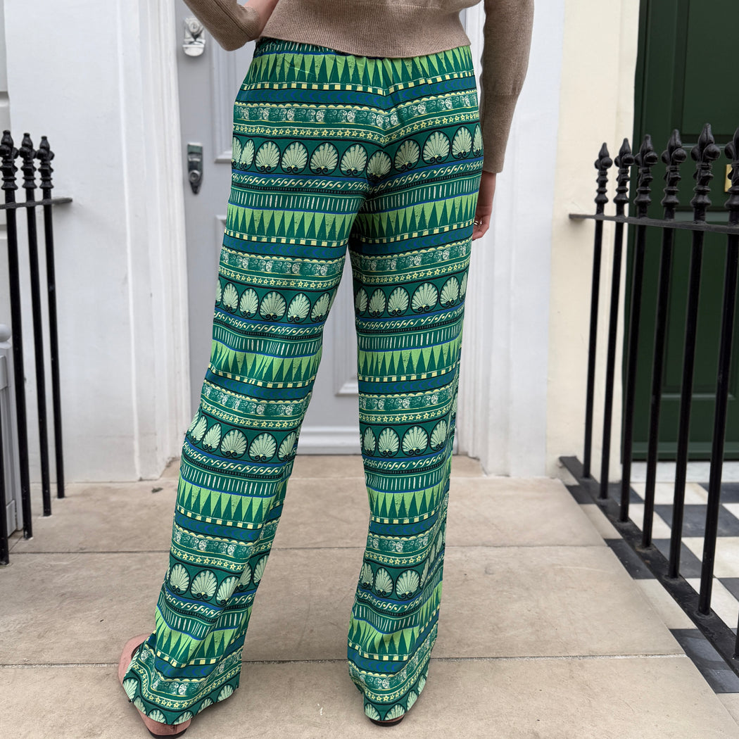 Elasticated waist relaxed wide leg in an emerald green print.