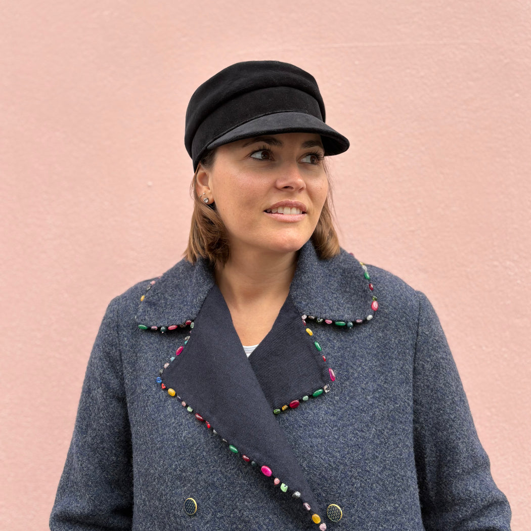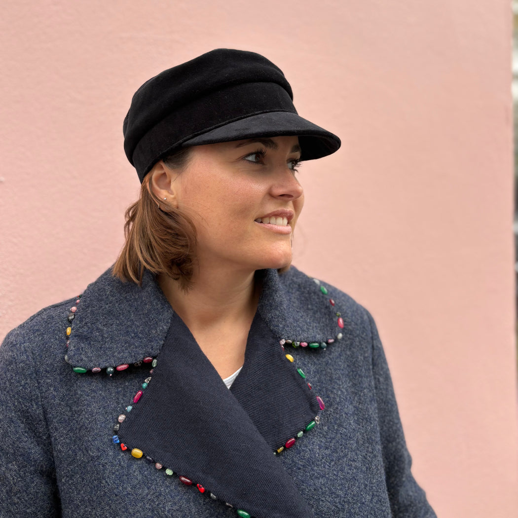 Based on the style of the iconic sailor’s cap this is a signature style for master milliner Anthony Peto. We adore this "bakerboy" or "newsboy" hat... In the softest wool and lined in breathable cotton, this is a fabulous trans-seasonal piece.