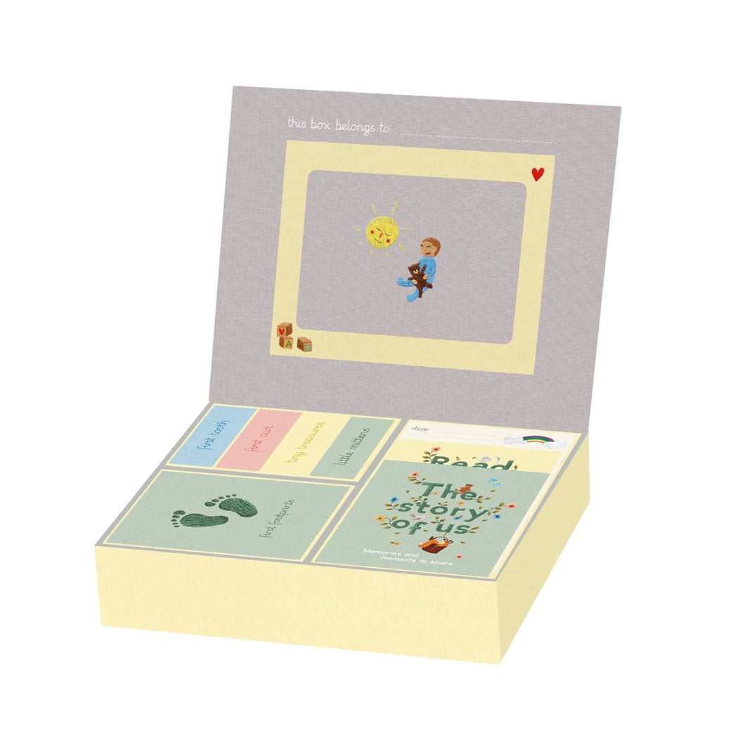 A special place to record and store life's big-little moments. Cherish baby’s various firsts, with little boxes for first teeth, first curl, hospital band and other tiny treasures, and a cloth bag for that first pair of shoes.