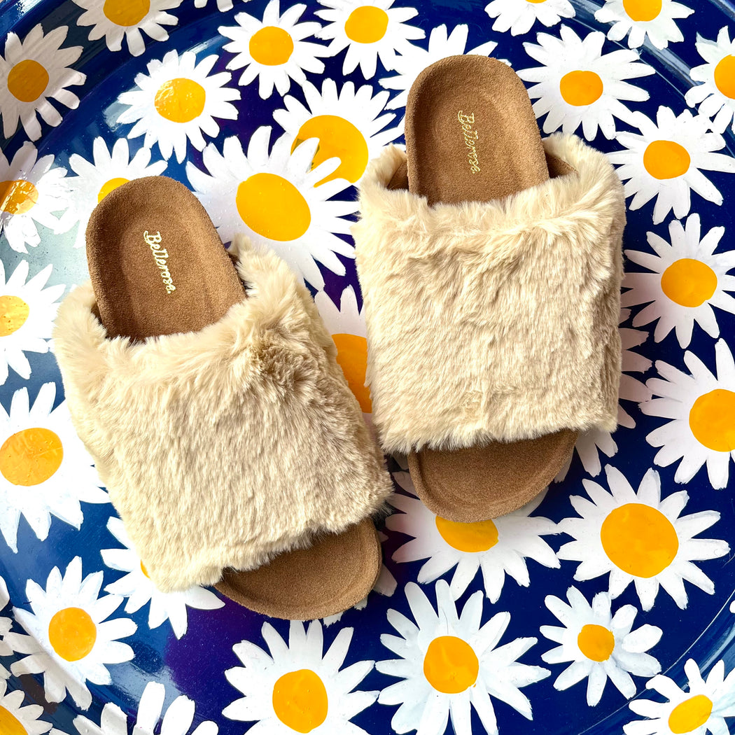 The Nova sliders are your statement spring-summer footwear, crafted in 100% faux fur, they are super soft and fluffy .