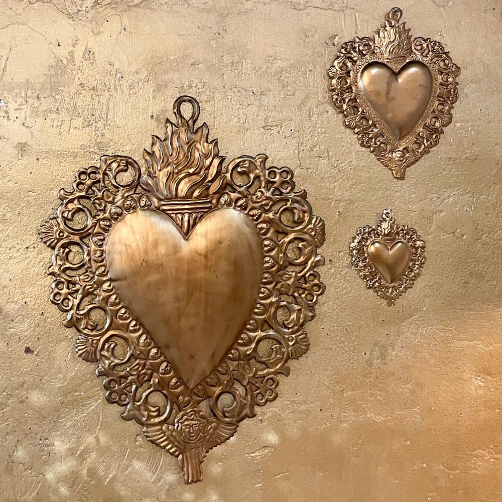 Beautiful, handcrafted distressed gold metal Peacock. Ex-votos are symbolic of devotion and gratitude, the perfect sentiment for a gift to a loved one.