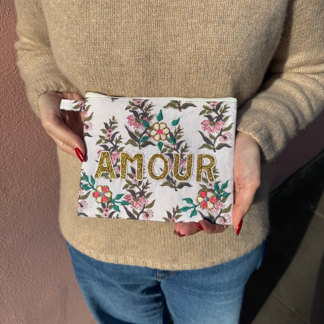 A zip pouch hand-embroidered in Senegal, with the CSAO signature wording, this clutch makes a great travel wallet, make-up bag or clutch bag!