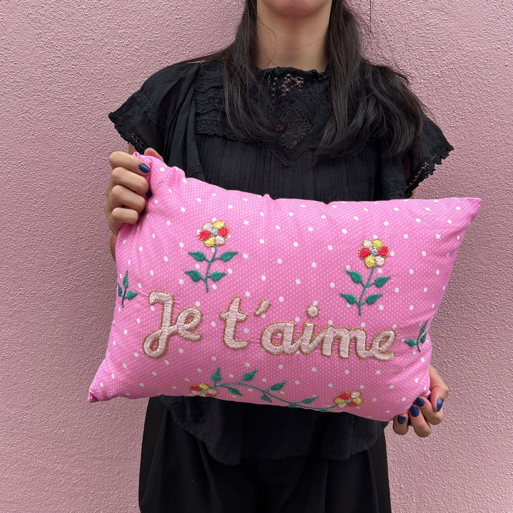 CSAO Je T'aime Cushion in Pink Polka Dot