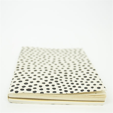 The cover are made of screenprinted handmade paper. The pages inside has some variety; some white, some brown etc. The handmade paper is made from the bark from a bush, which is locally called "Lokta".