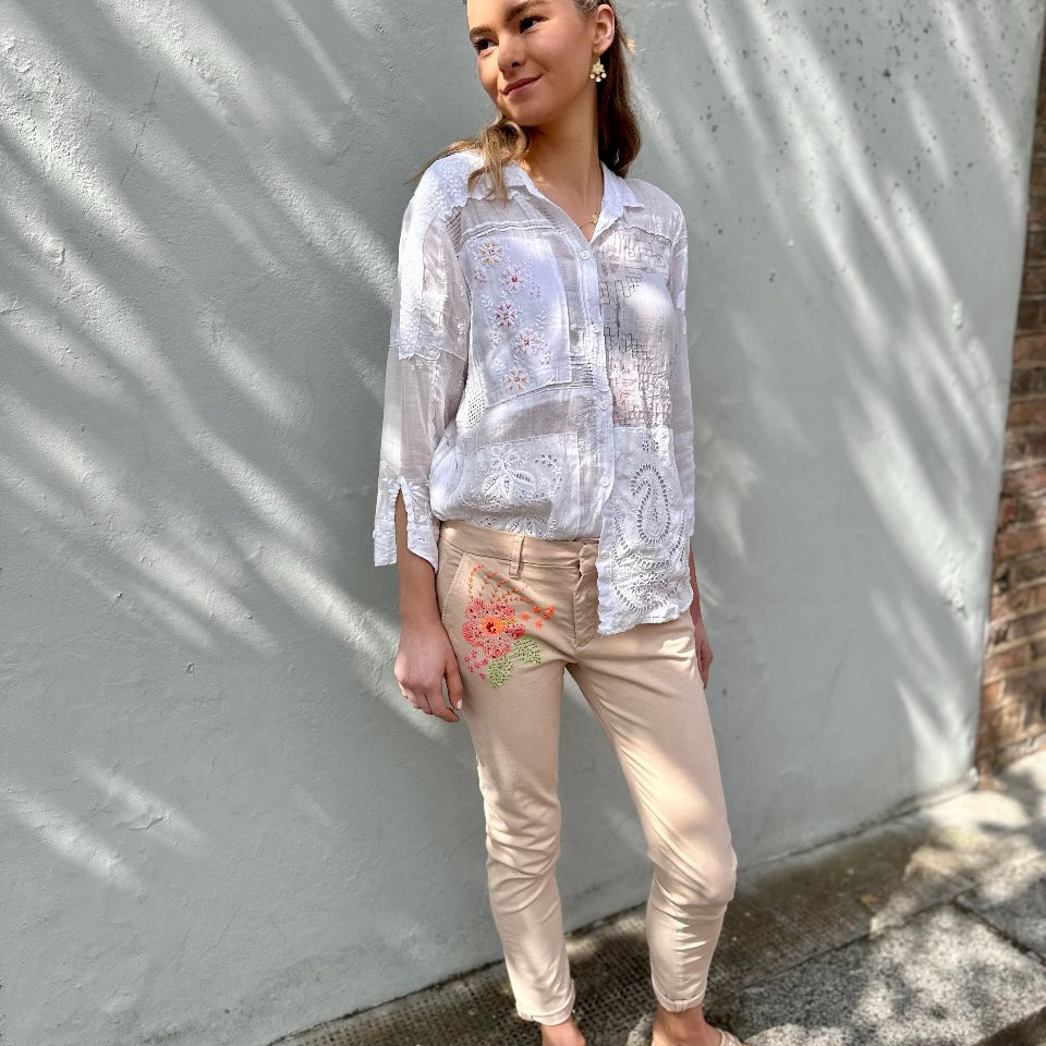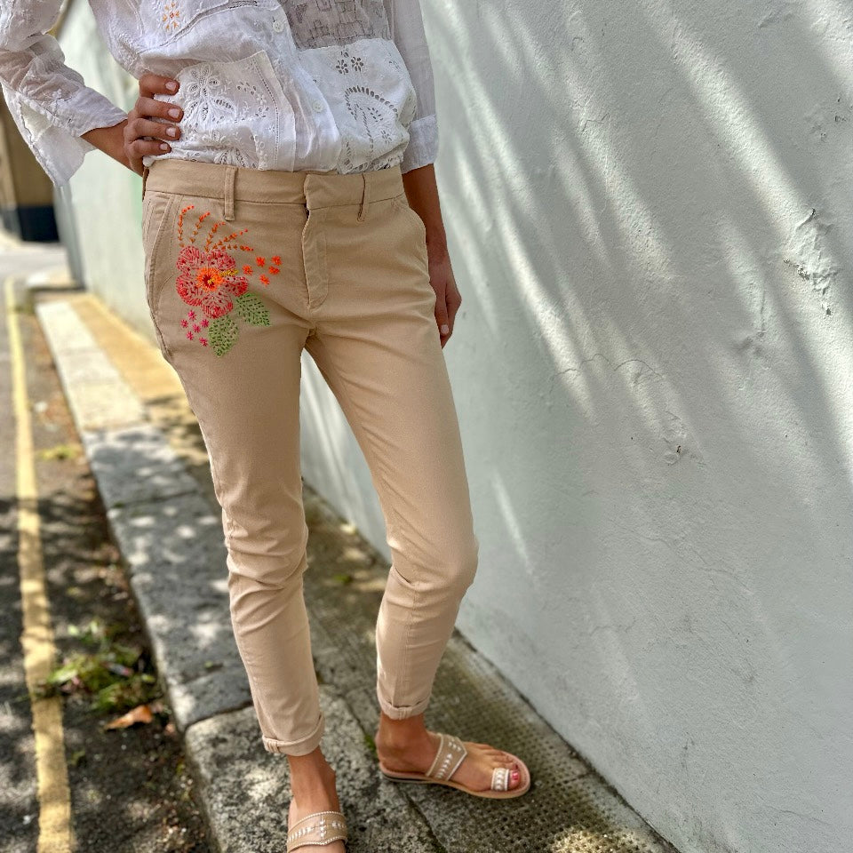 Exclusively Cross: Floral Embroidered Reiko Hazelnut Chinos