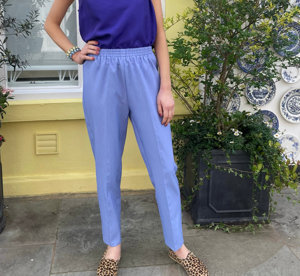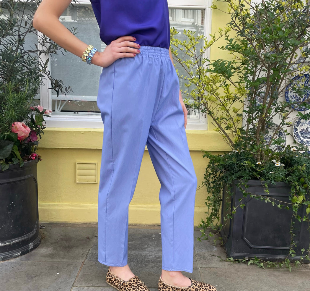 A wonderful blend of viscose twill and cotton, this is a straight leg trouser with an elasticated waist for ease. A soft cornflower blue is a must for your summer wardrobe.