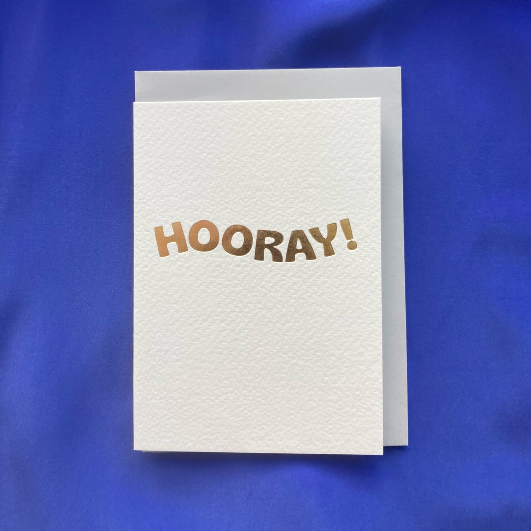 Hand hot foiled in Holly's Essex studio onto 300gsm card with accompanying envelope.