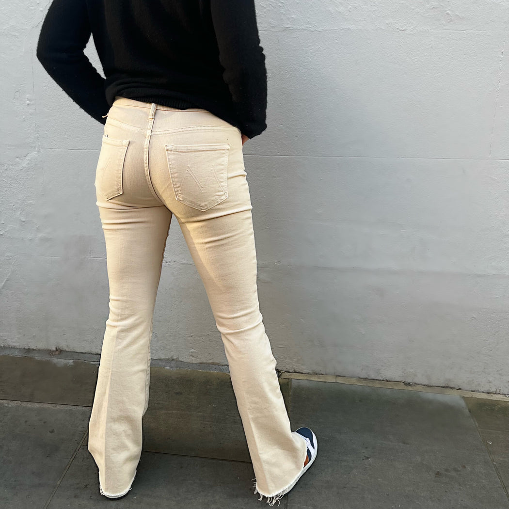 These Mother Fog Weekender Fray Jeans are one of Mothers signature shapes. Fitted and slightly flared, made in a stretch denim to flatter all. The creamy stone colour is a great and versatile alternative to your classic blue denim.