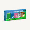 5 erasers with full-color illustrated sleeves, packaged in a sweet die-cut box.